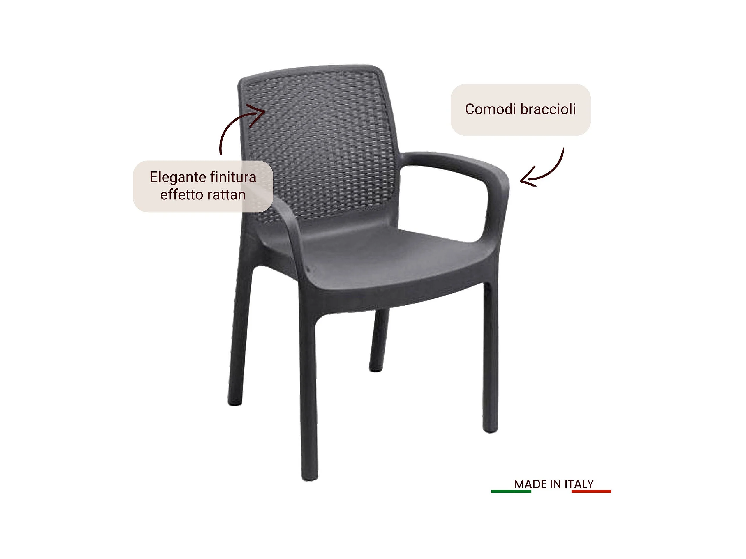 Chaise d'extérieur Dboatti, Siège de jardin, Fauteuil d'extérieur effet rotin, 100% Made in Italy, 60x58h89 cm, Anthracite