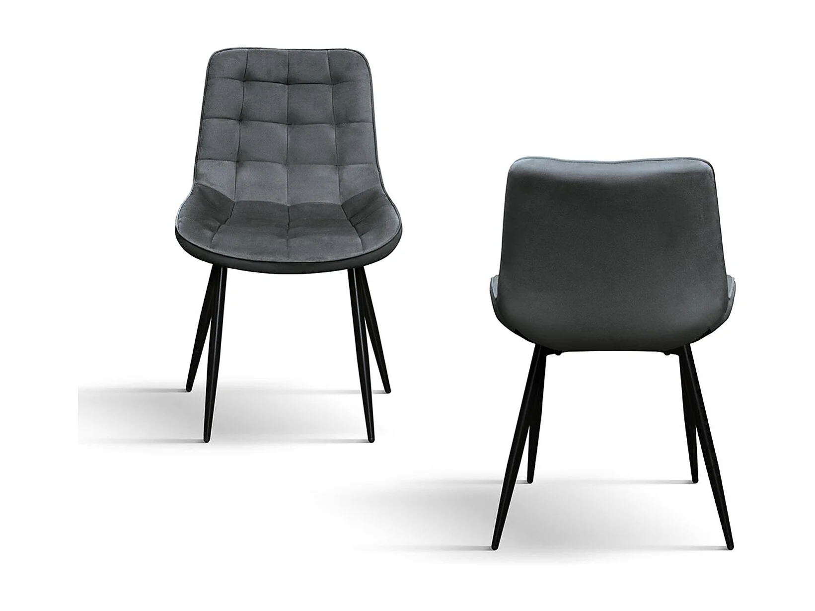 Ensemble de 4 chaises recouvertes de velours gris et pieds en métal noir - BARCELONA