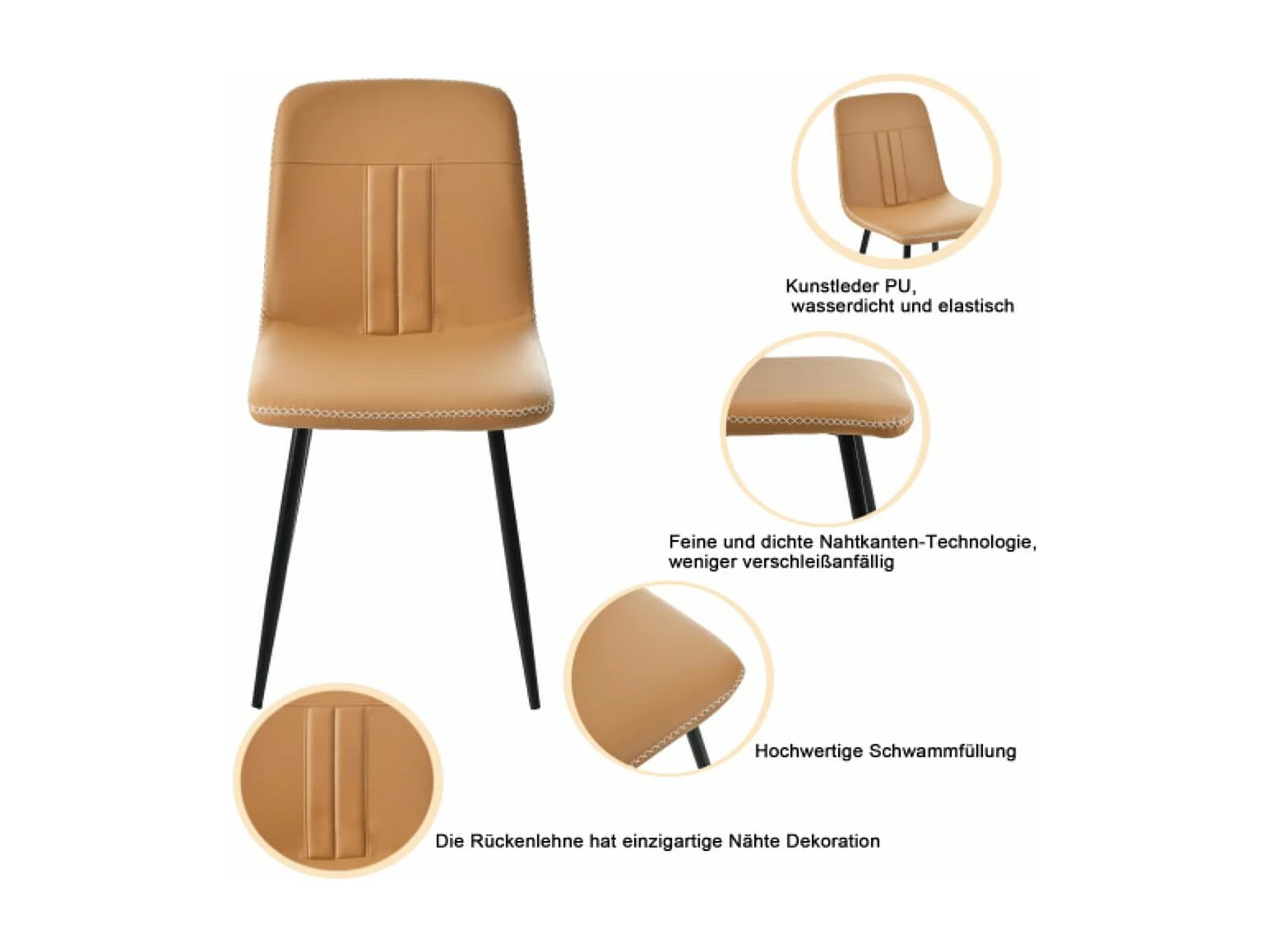 Ensemble de 4 chaises rembourrées avec dossier en PU, structure en métal, brun
