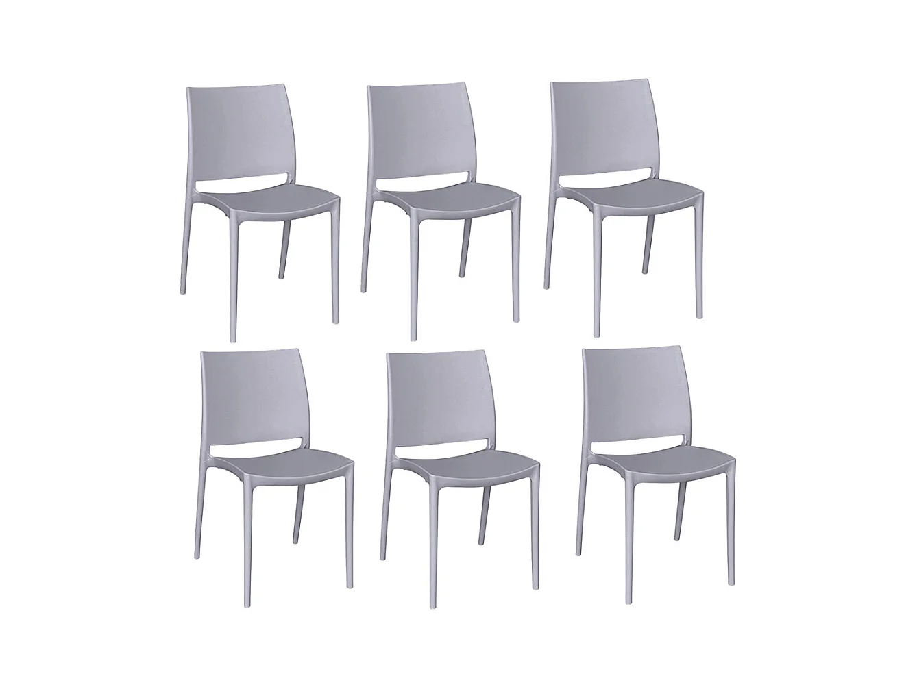 Ensemble de 6 chaises de salle à manger Altea en plastique gris clair modèle Comfort