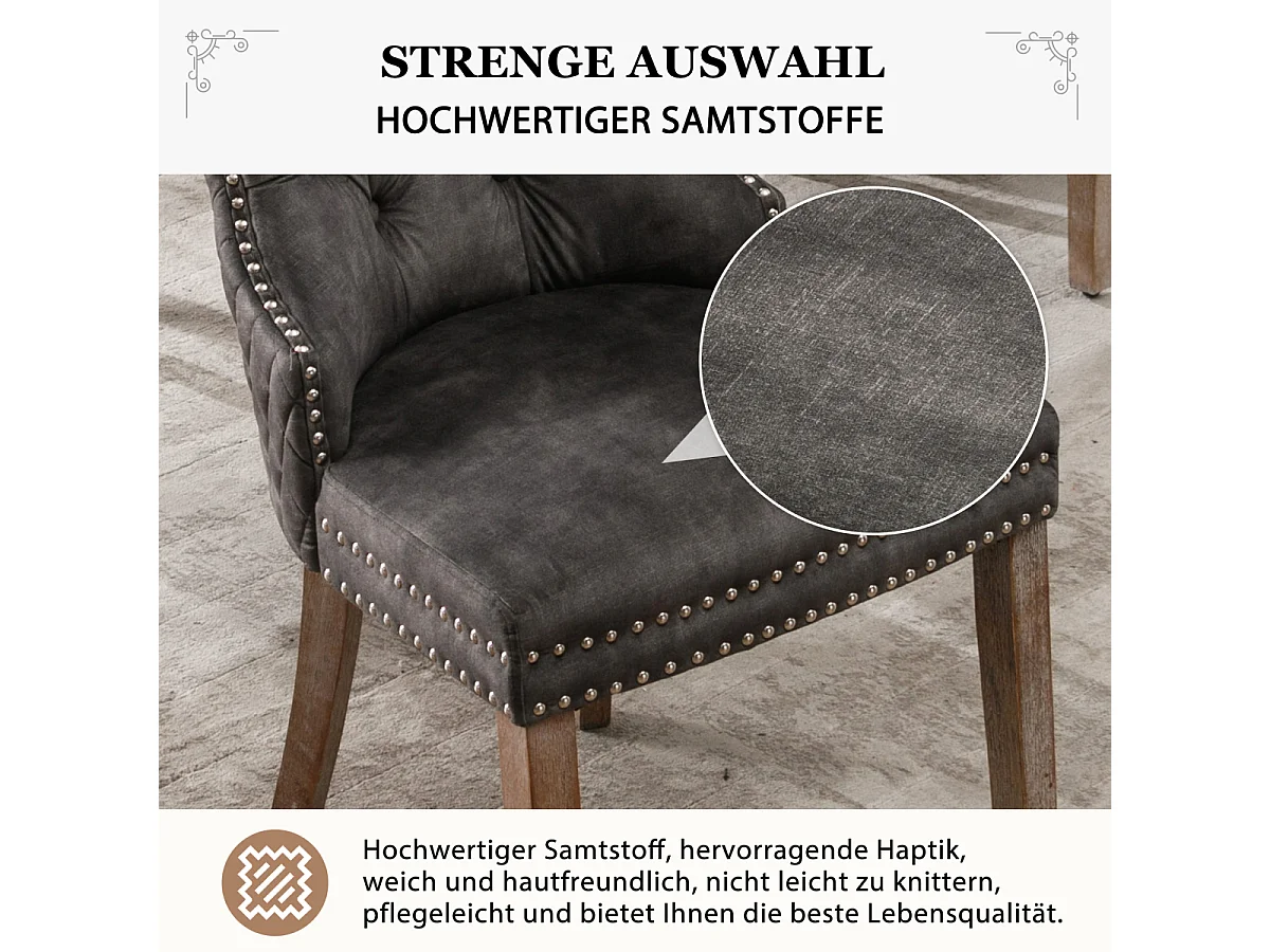 Ensemble de 6 chaises de salle à manger, chaise d'appoint rembourrée en velours avec garniture cloutée et pieds en bois massif, grise.