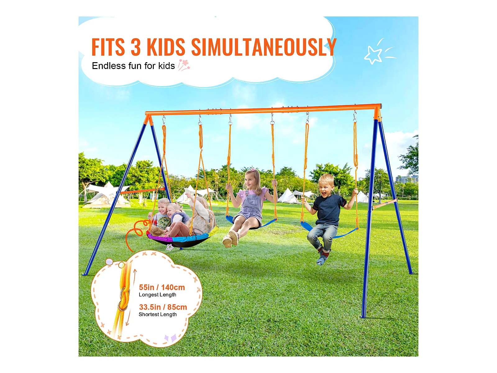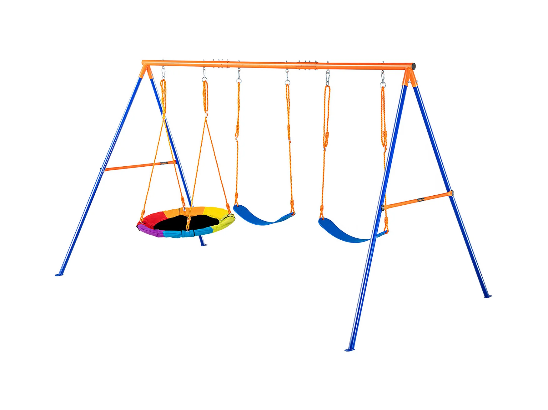 Ensemble de Balançoires Portique SucceBuy de Jardin avec 1 Nacelle 2 Sièges à Ceinture, Support en Métal, Corde Réglable pour la cour Arrière