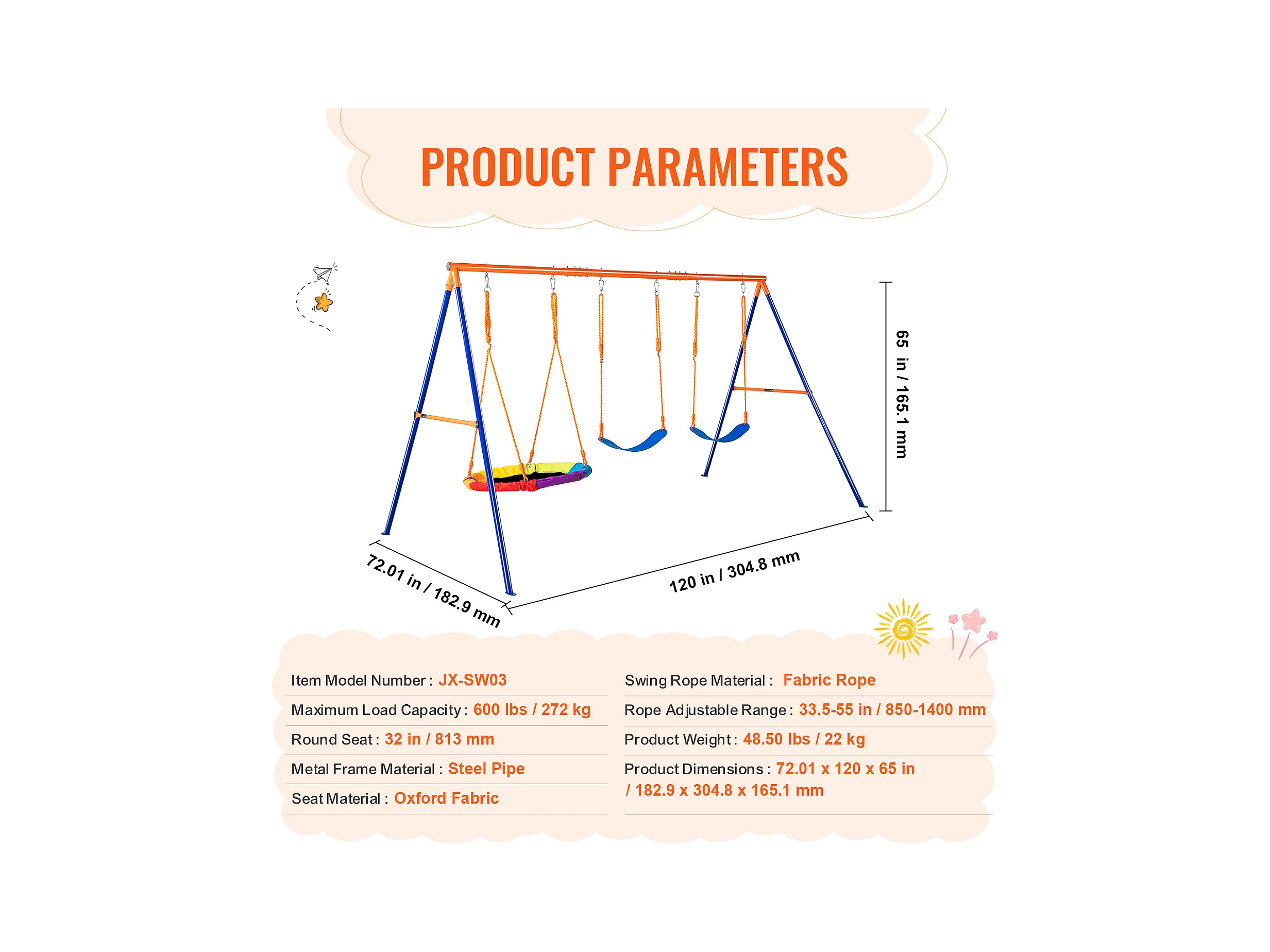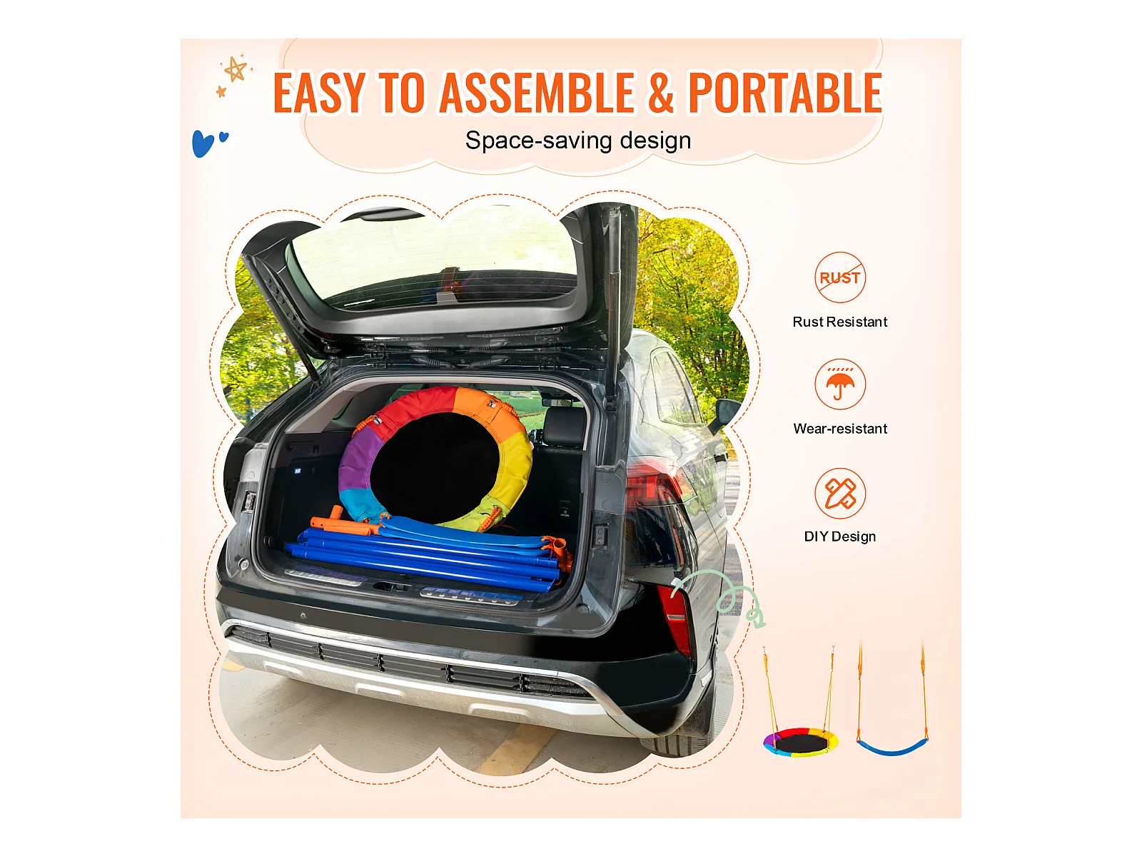 Ensemble de Balançoires Portique SucceBuy de Jardin Nacelle 102 cm Charge 199,6 kg, Support en Métal, Corde Réglable pour l'arrière-cour