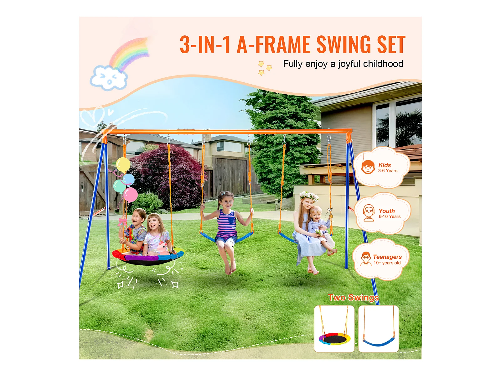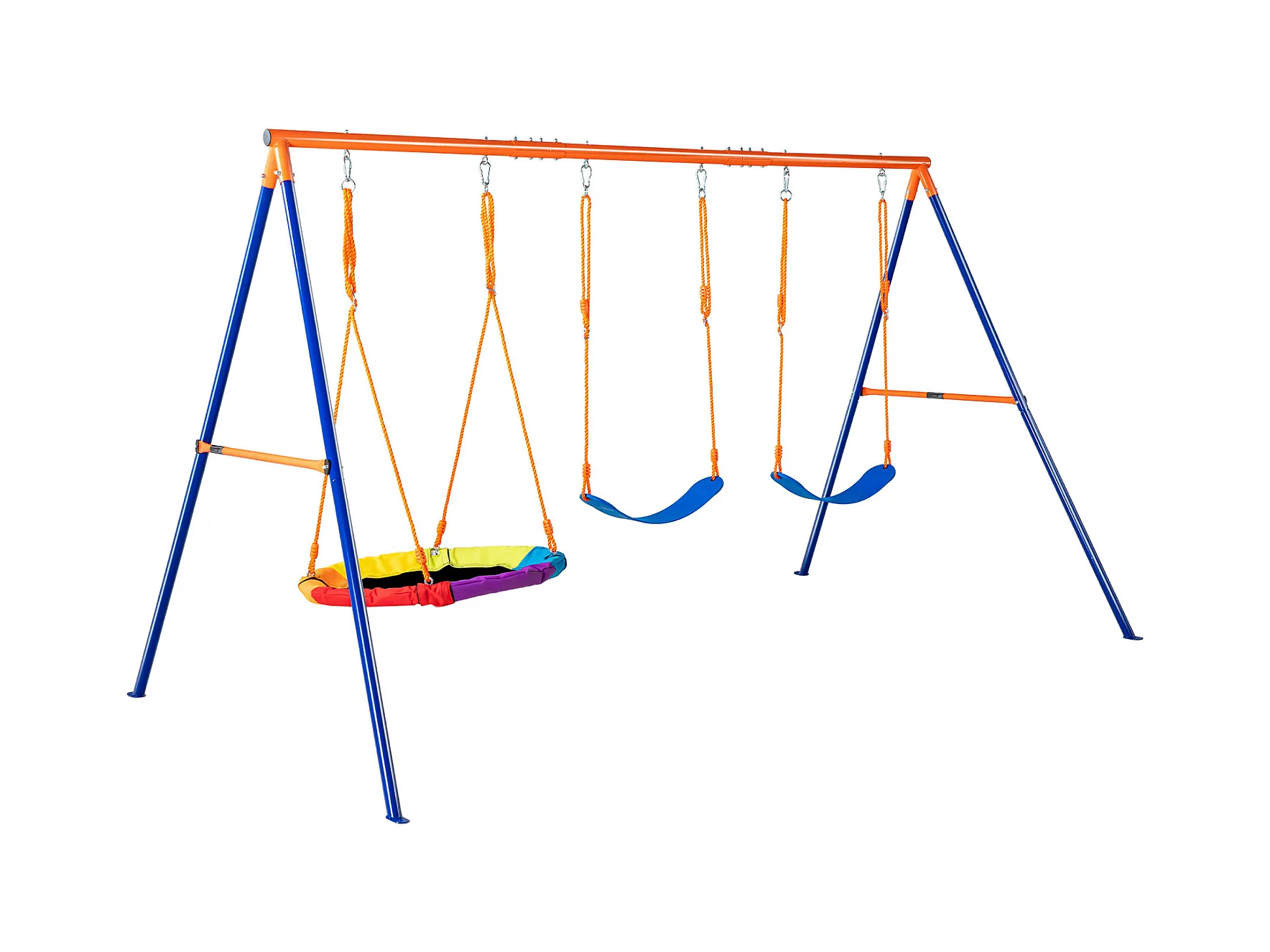 Ensemble de Balançoires 3 en 1 pour Enfants SucceBuy, Support en Métal Pliable, 4 Sacs de Sable pour l'Arrière-Cour, capacité de 54.43kg