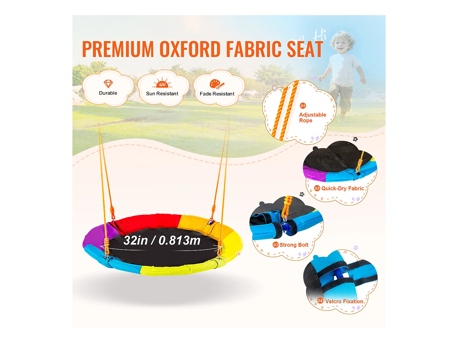 Balançoire Ronde SucceBuy en Toile D'Araignée de 102 cm, pour Enfants en Extérieur, 340 kg, Siège en Corde Tissée Stable avec Sangles et Cordes Réglables