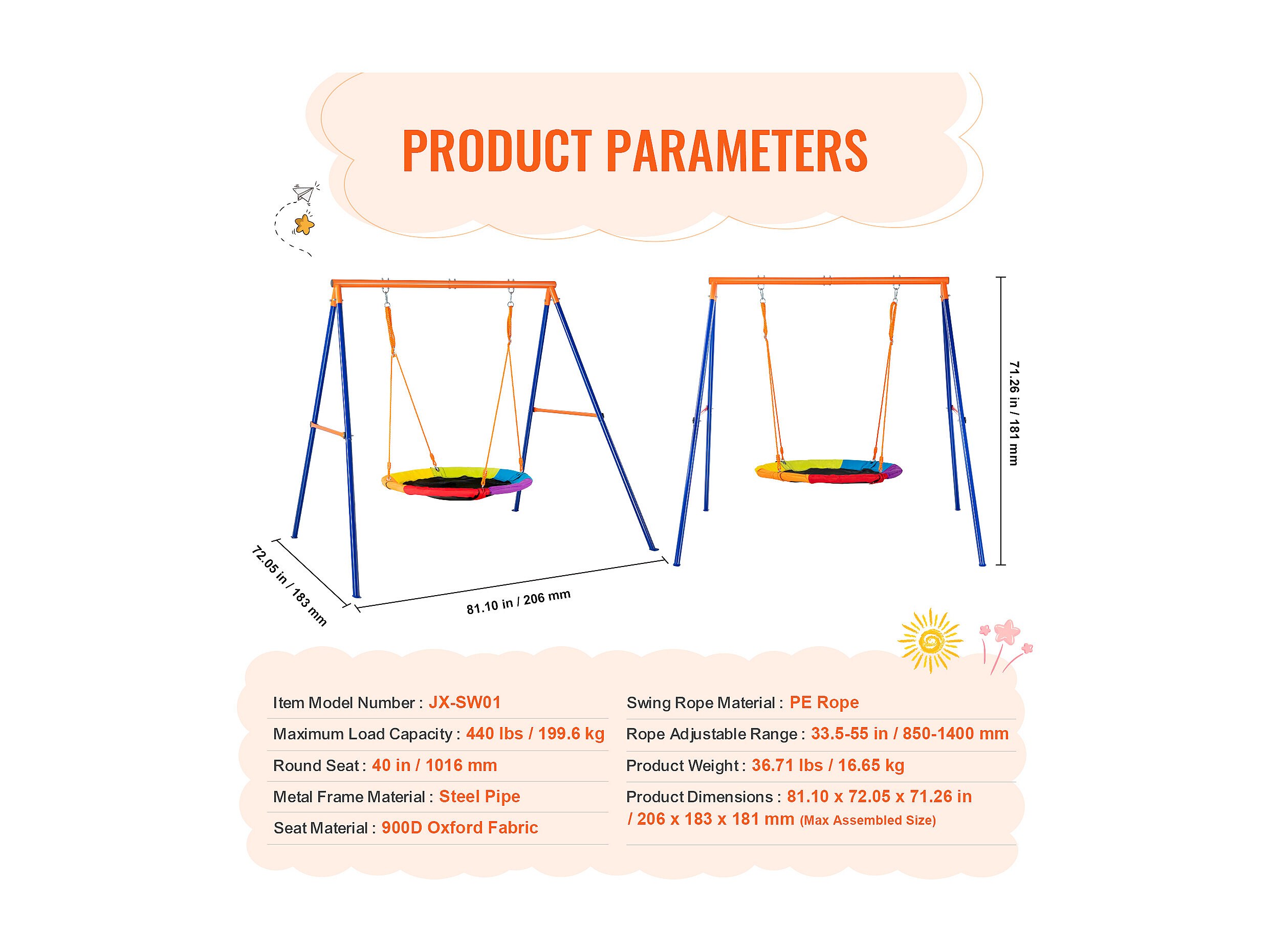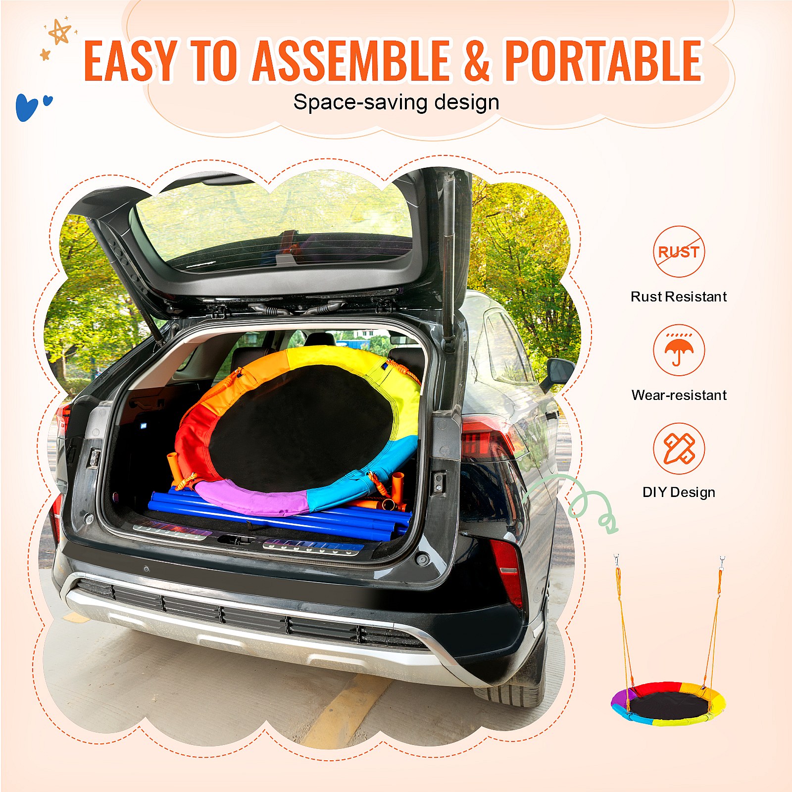Ensemble de Balançoires Portique SucceBuy de Jardin Nacelle 102 cm Charge 199,6 kg, Support en Métal, Corde Réglable pour l'arrière-cour