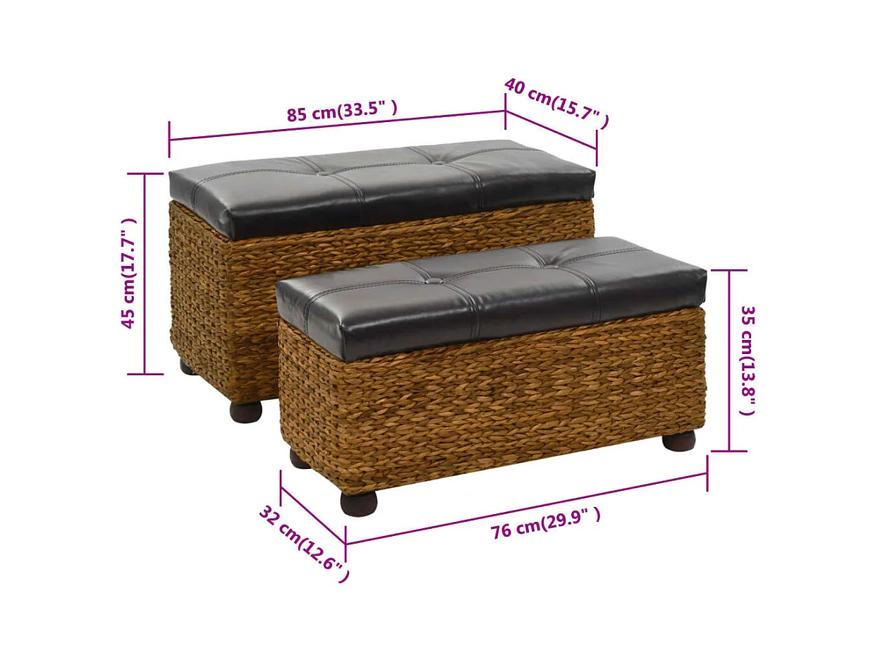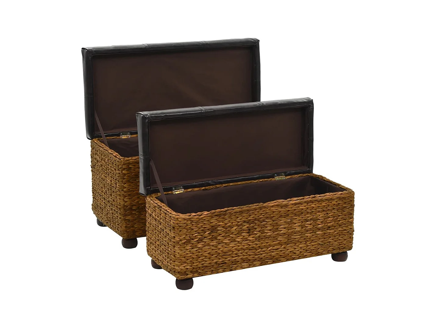 Banc avec 2 paniers Jacinthe d'eau 71 x 40 x 42 cm Marron
