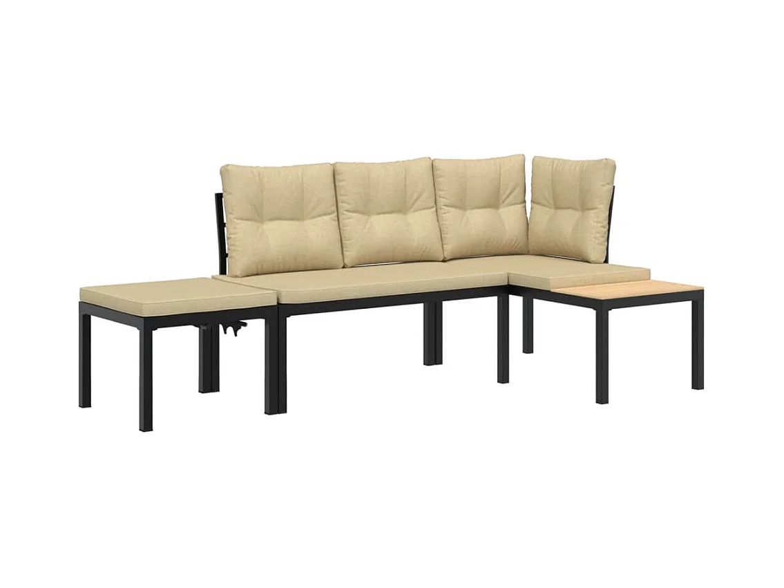 Ensemble de banc de jardin avec coussins 3 pcs noir FR61307