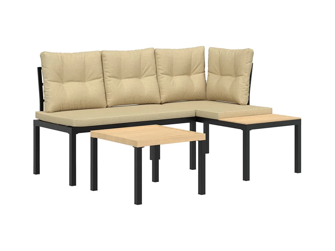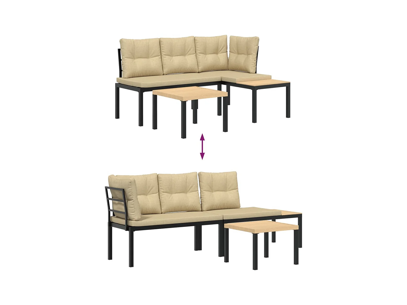 Ensemble de banc de jardin avec coussins 3 pcs noir