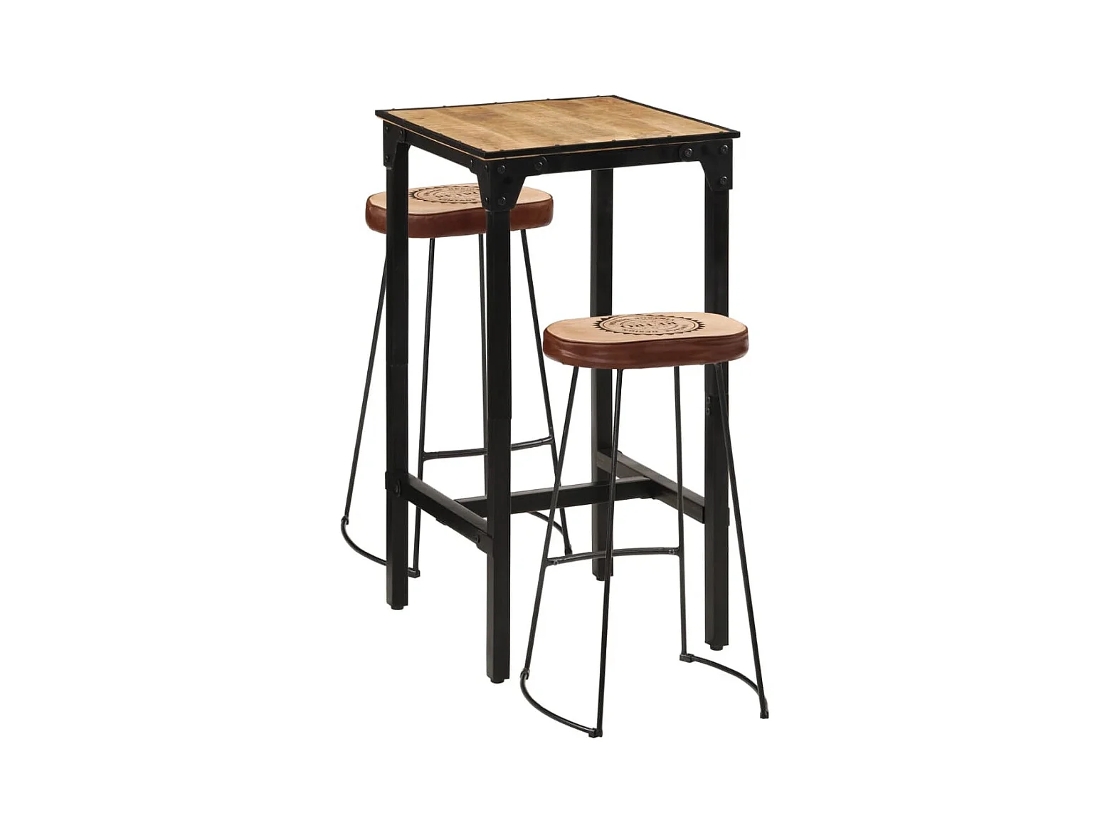 Ensemble de bar 3 pcs bois de manguier brut massif et métal