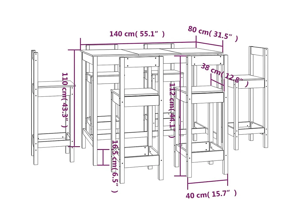 Ensemble à manger Panama 7 pcs blanc bois de pin massif