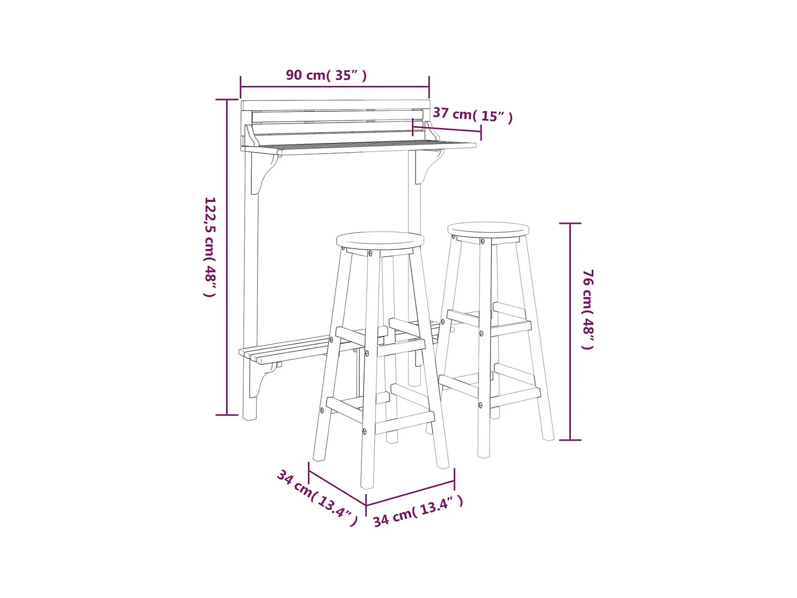 Ensemble de bar 3 pcs Bois d'acacia solide