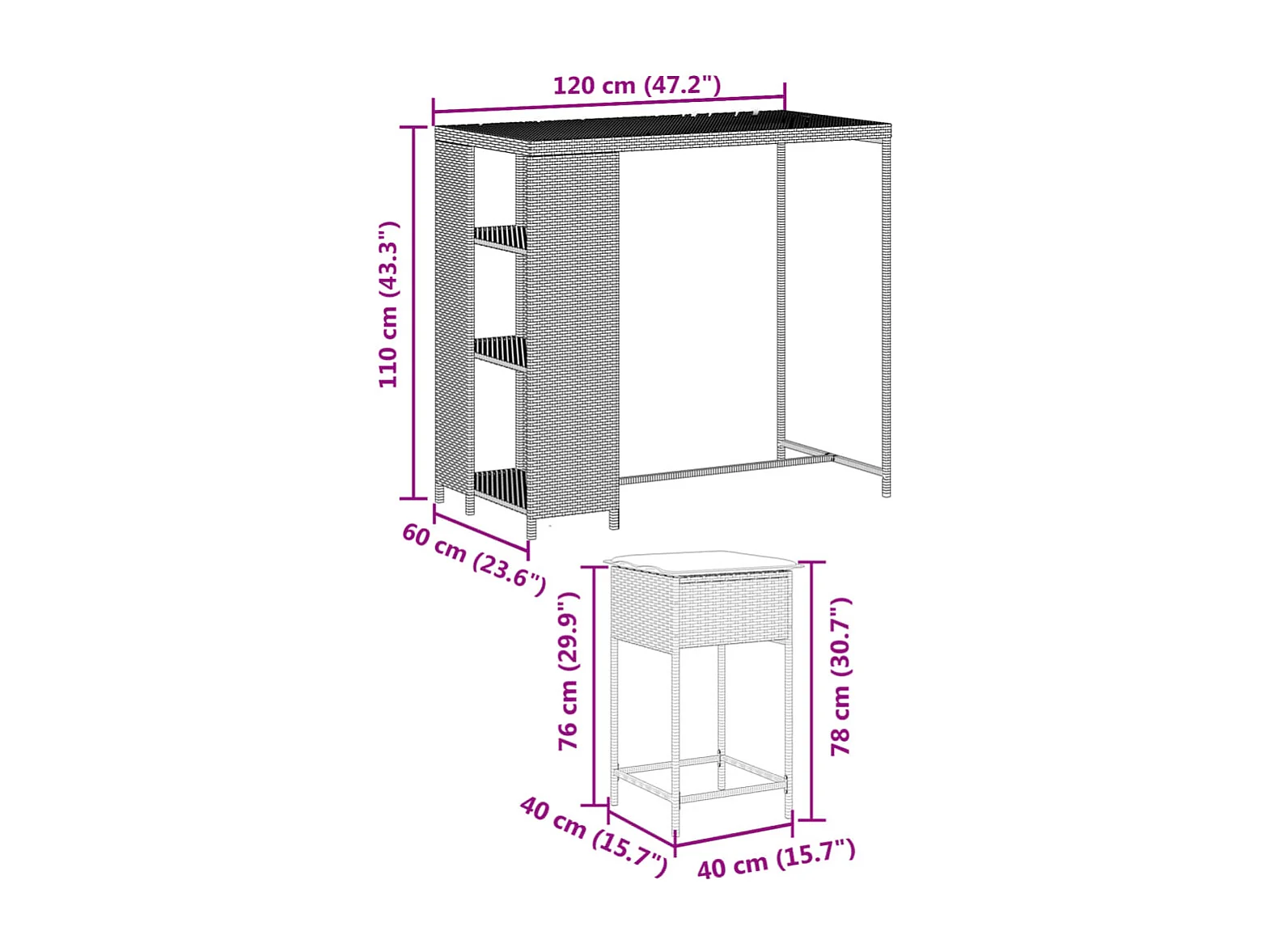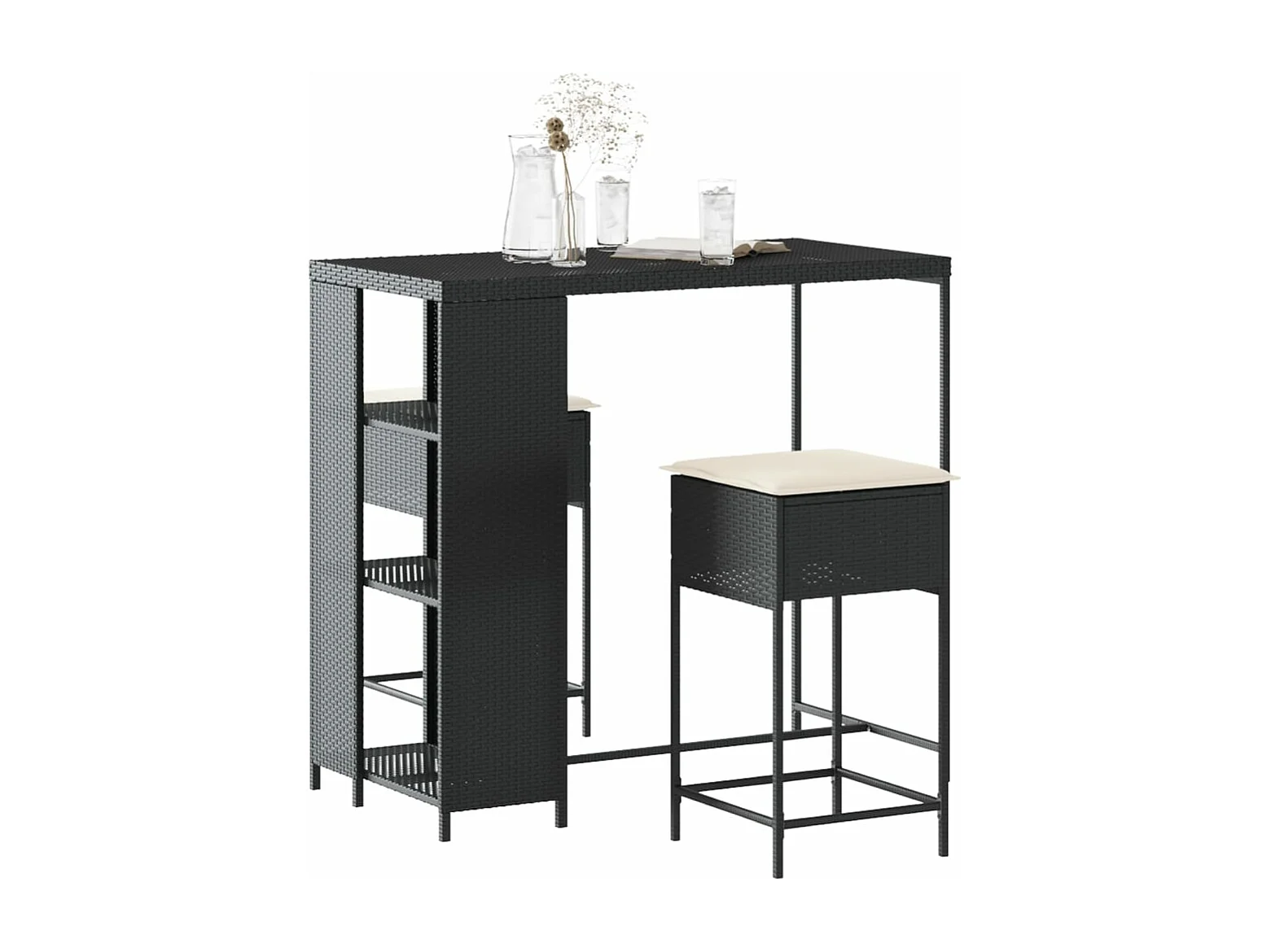 Ensemble de bar de jardin 3 pcs avec coussins noir poly rotin