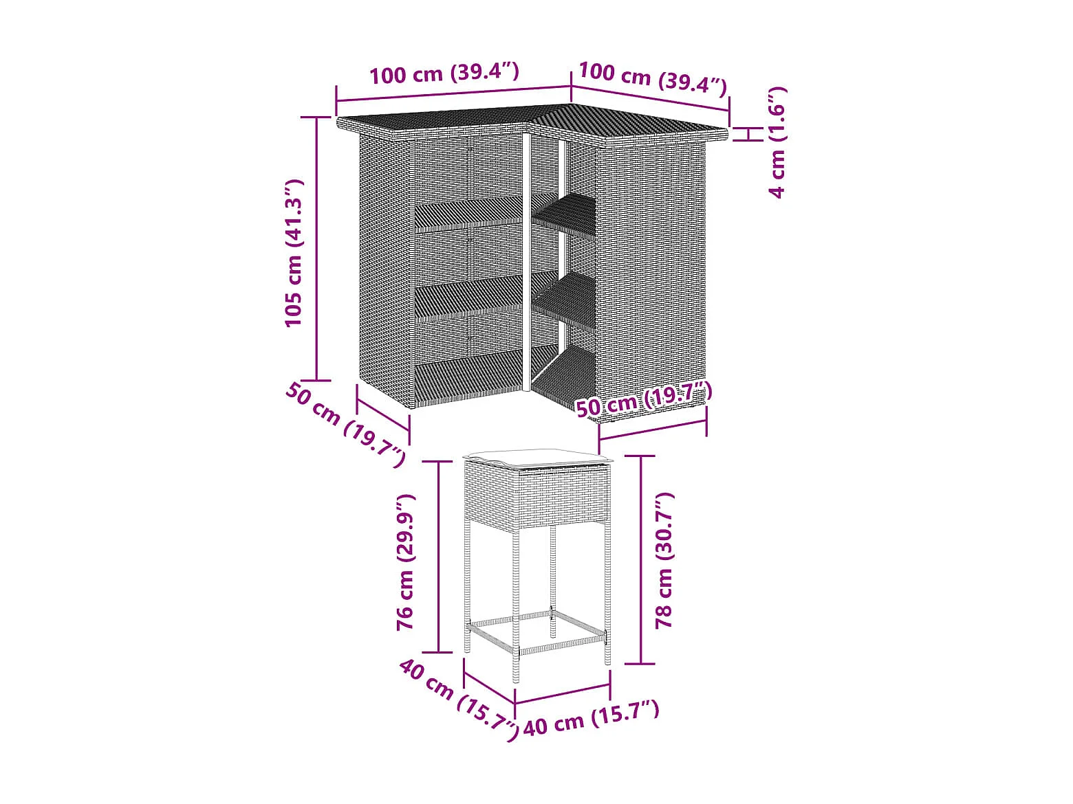 Ensemble de bar de jardin 3 pcs et coussins gris résine tressée