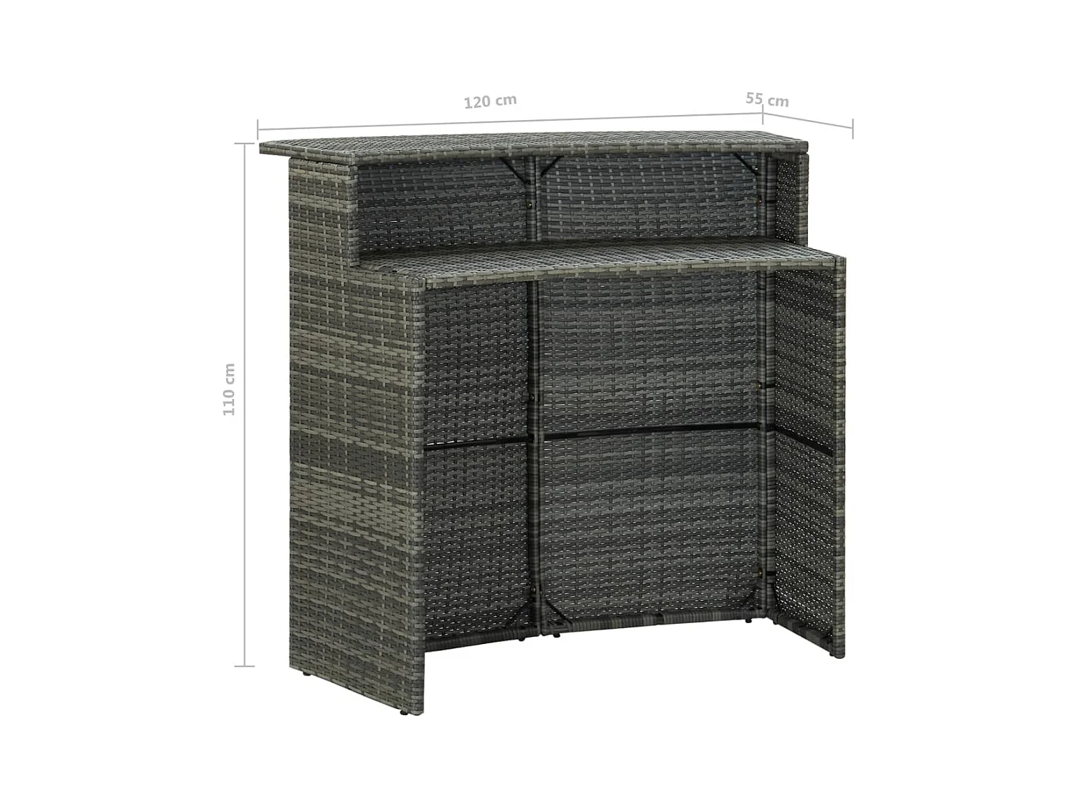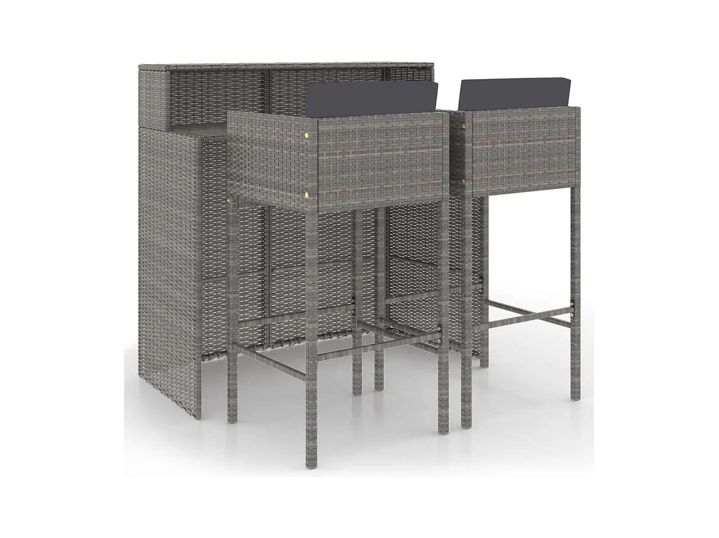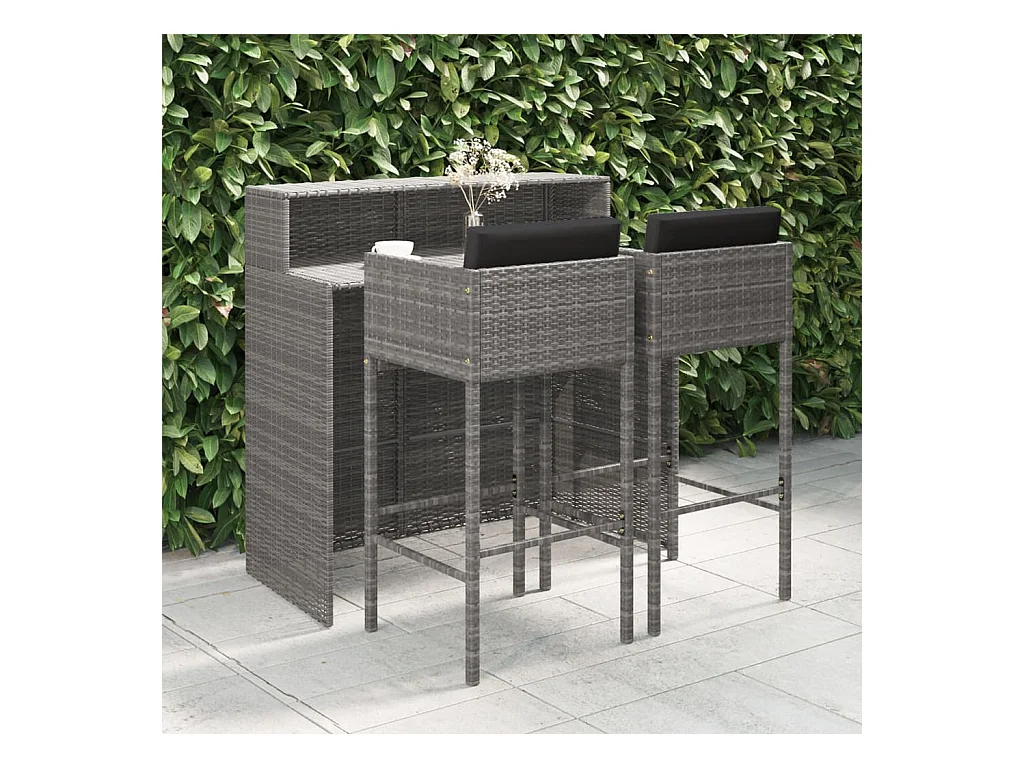 Ensemble de bar de jardin 3 pcs et coussins Résine tressée Gris