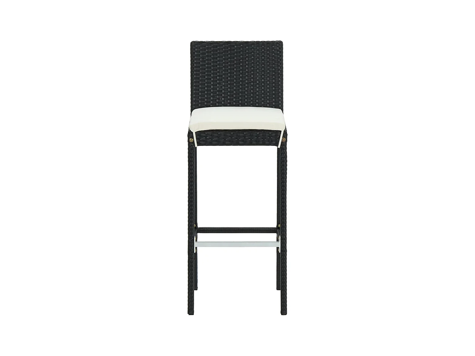 Ensemble de bar de jardin 3 pcs et coussins Résine tressée Noir