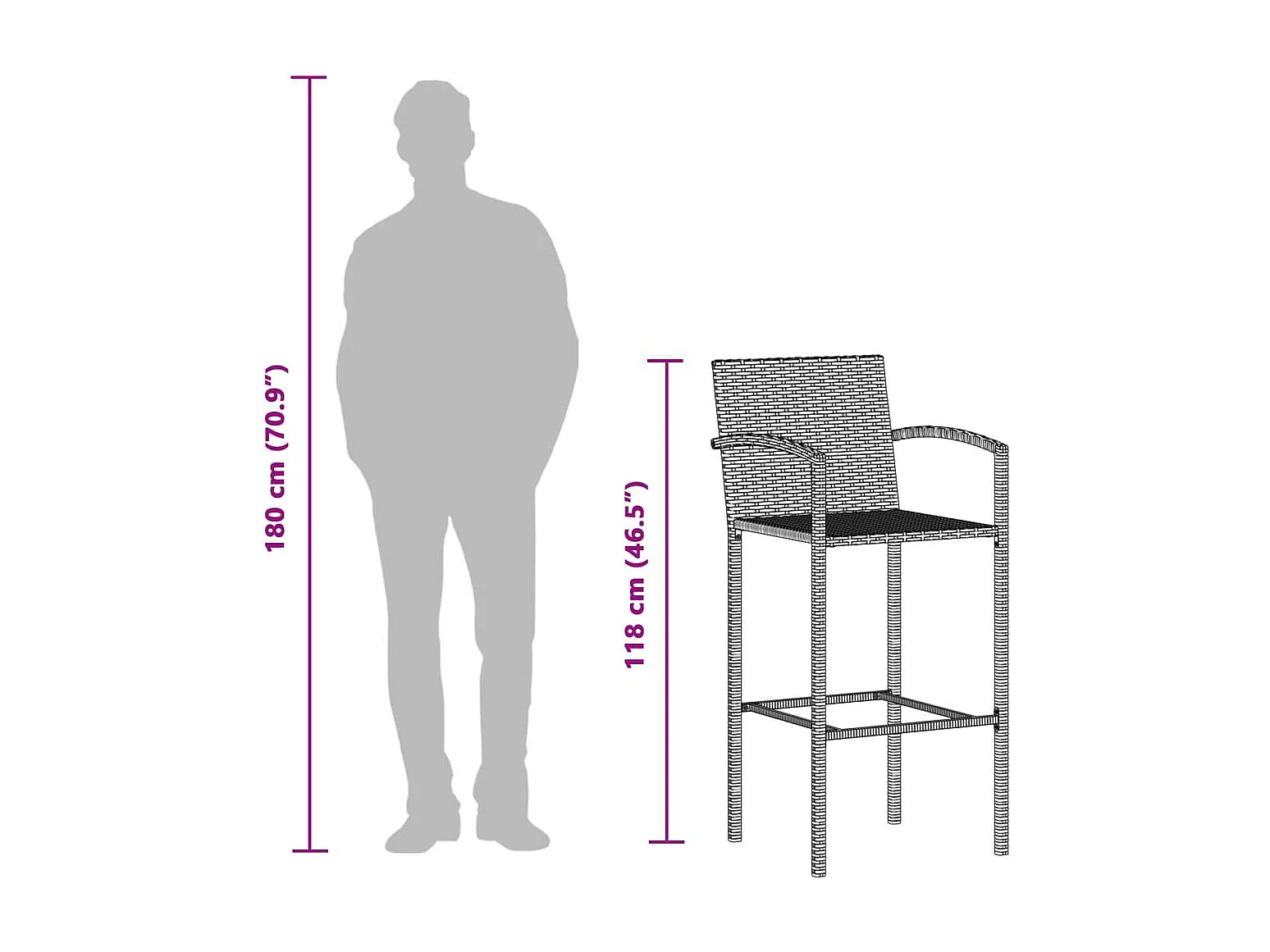 Ensemble de bar de jardin 3 pcs gris bois massif acacia rotin