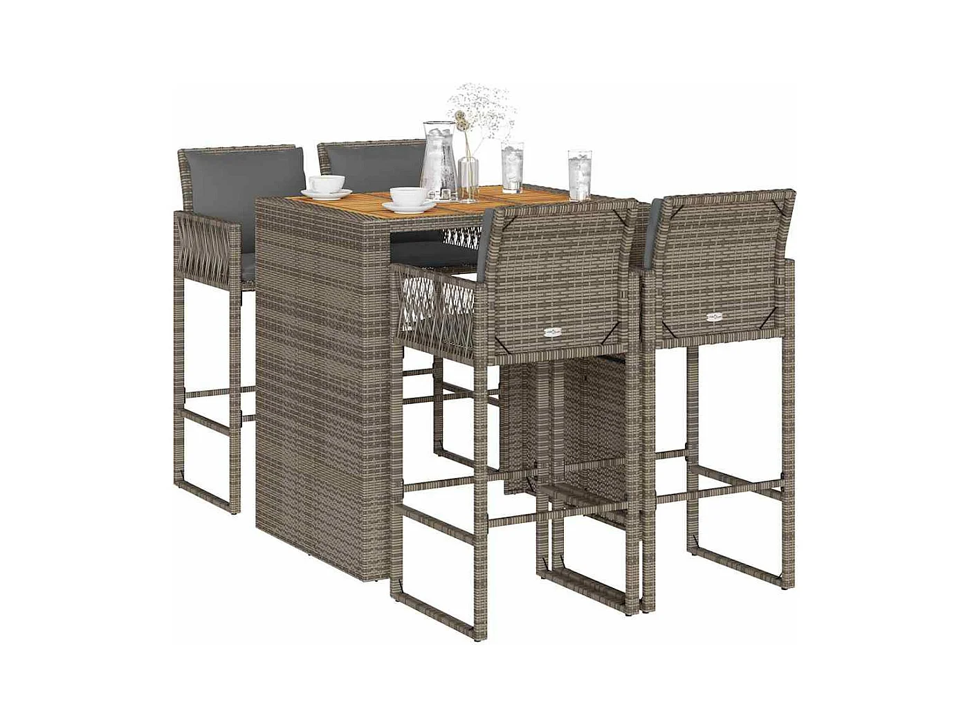 Ensemble de bar de jardin 5 pcs et coussins Résine tressée Gris GFDF73090