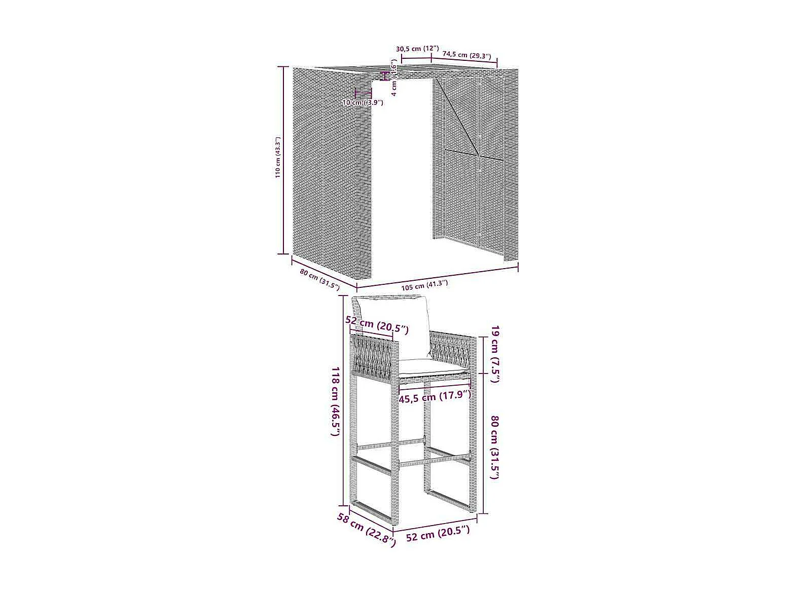 Ensemble de bar de jardin 3 pcs et coussins gris résine tressée