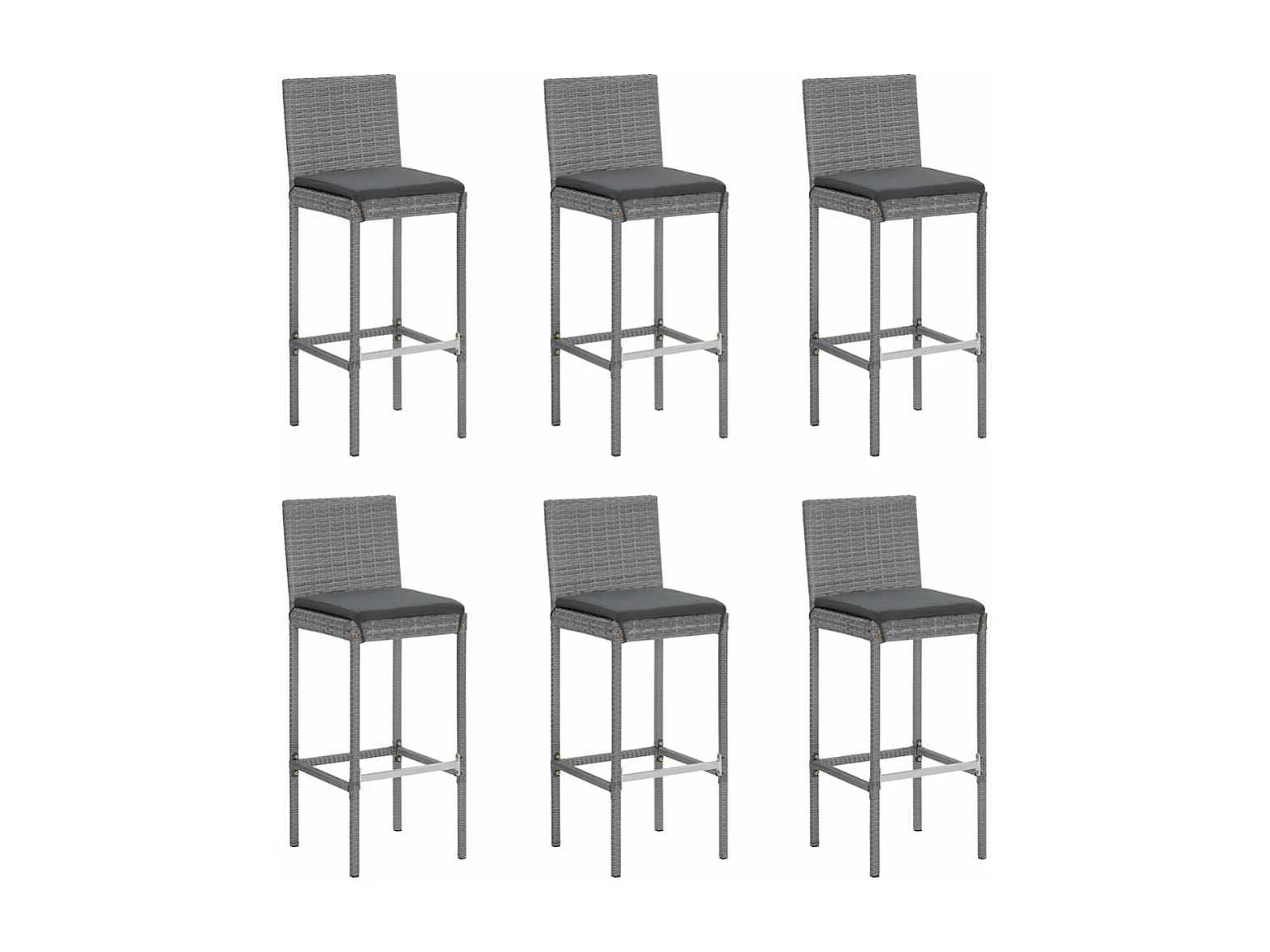 Ensemble de bar de jardin 7 pcs avec coussins gris poly rotin