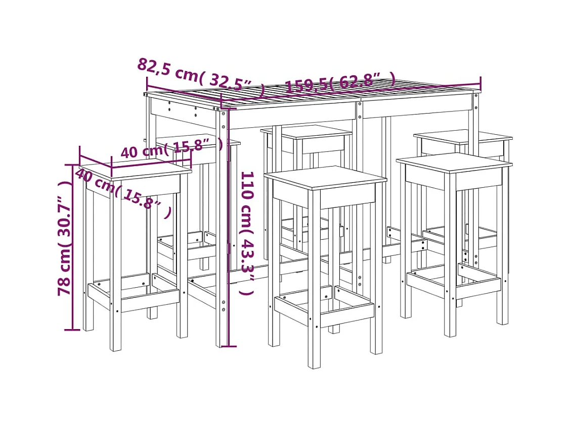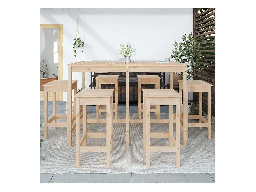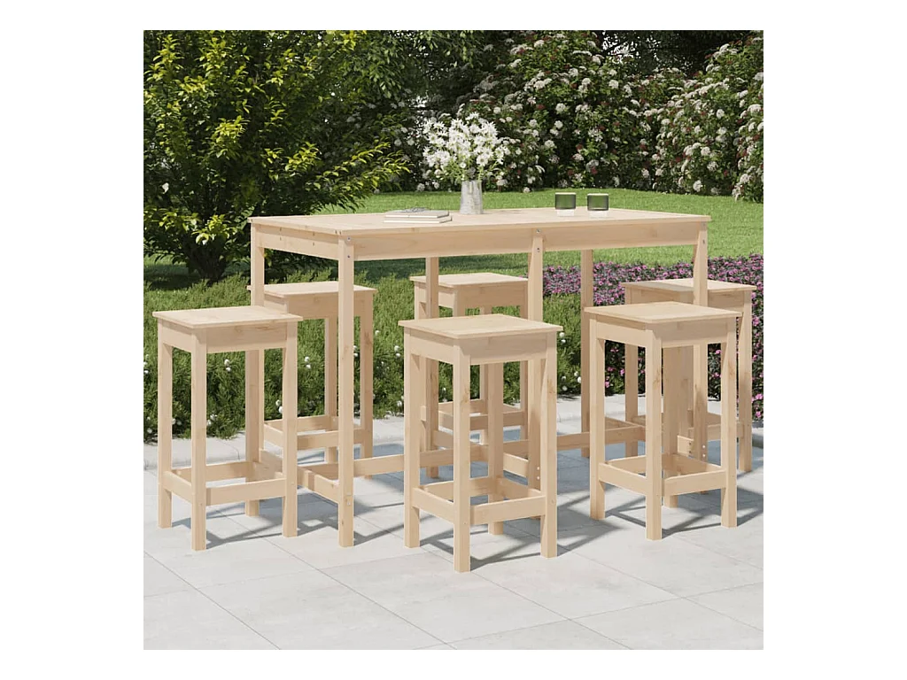 Ensemble de bar de jardin 7 pcs Bois de pin massif
