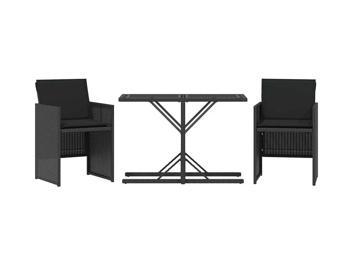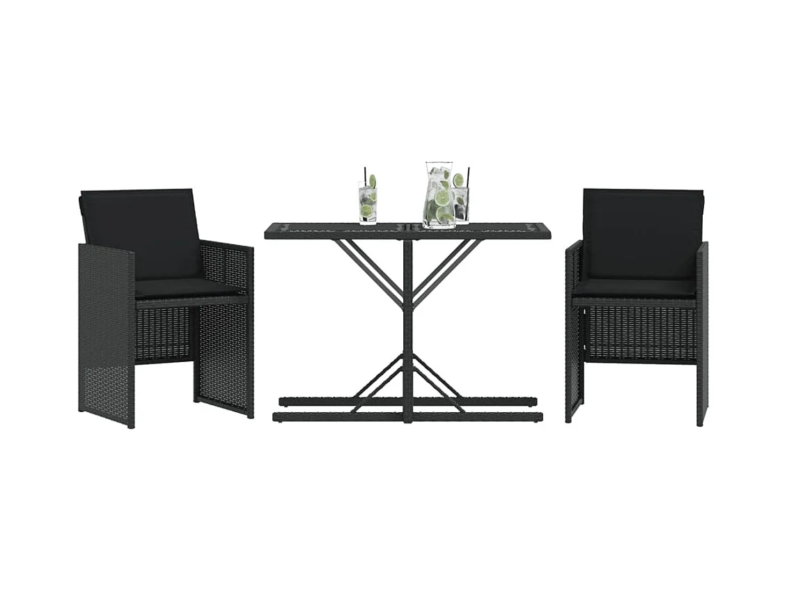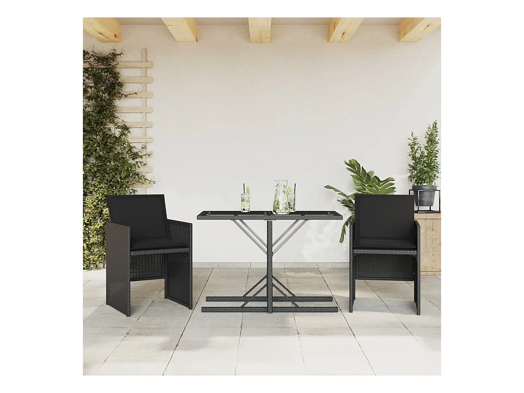 Ensemble de bistro 3 pcs avec coussins noir résine tressée FR75018