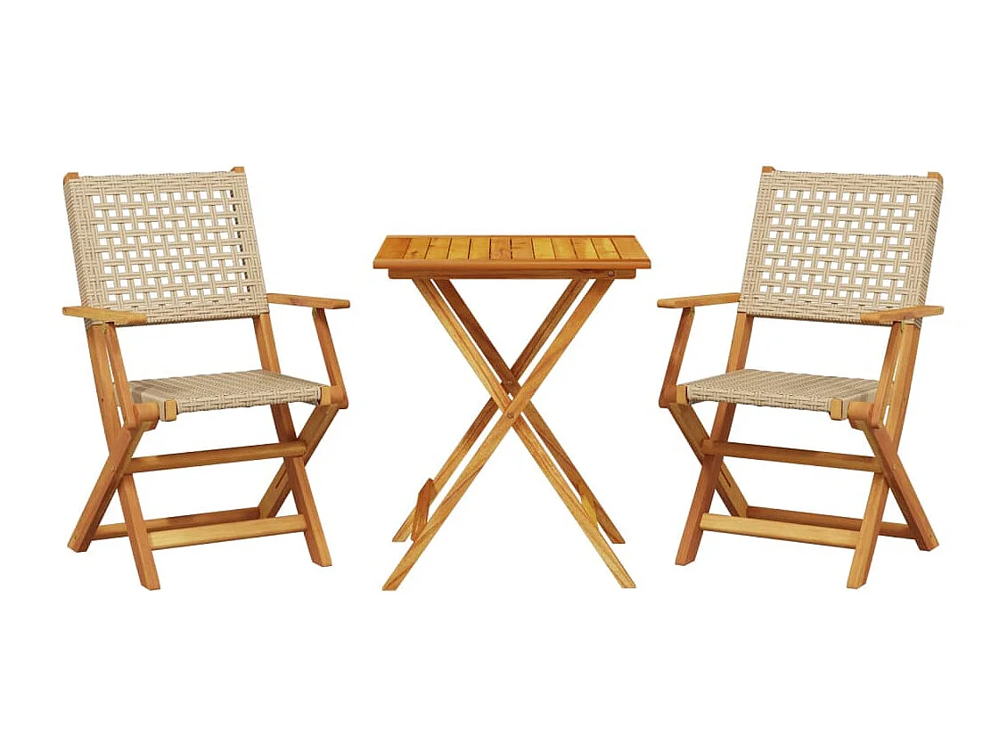Ensemble de bistro 3 pcs beige résine tressée et bois massif