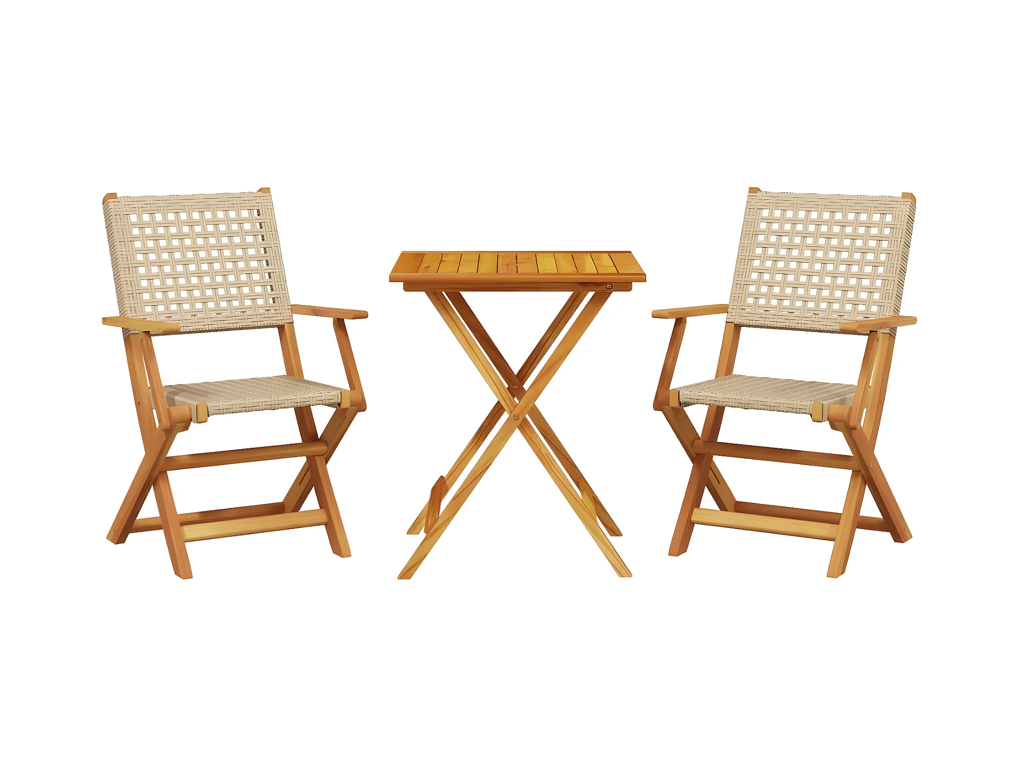 Ensemble de bistro 3 pcs beige résine tressée et bois d'acacia FR77340