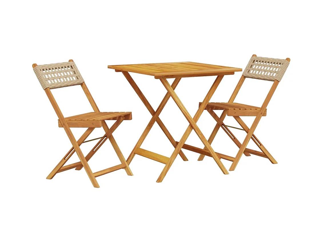 Ensemble de bistro 3 pcs beige résine tressée et bois d'acacia FR77340