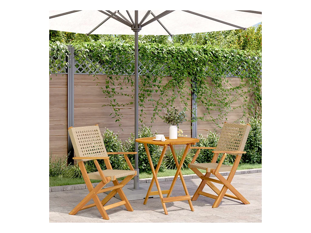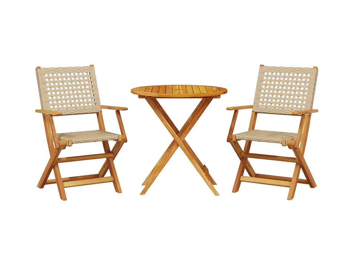 Ensemble de bistro 3 pcs beige résine tressée et bois d'acacia FR77340