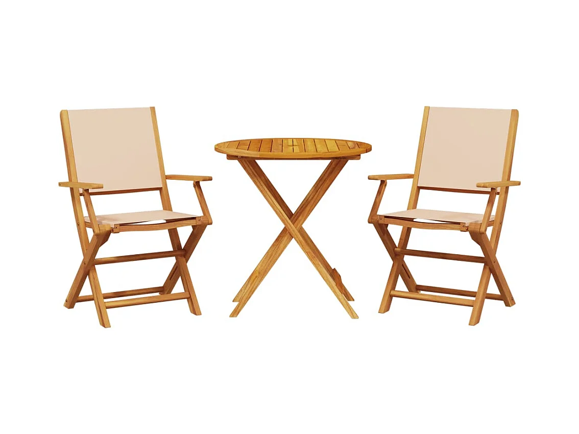 Ensemble de bistro 3 pcs beige polypropylène et bois massif FR10185