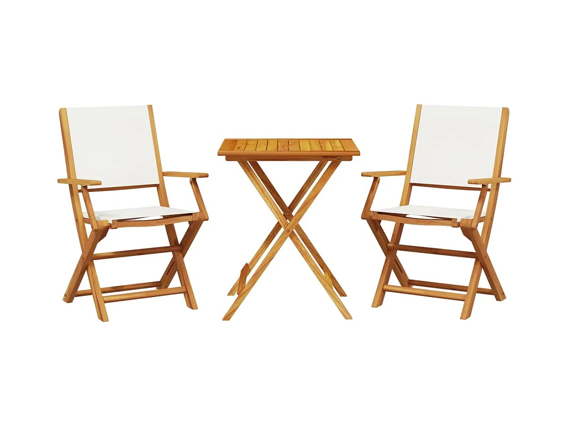 Ensemble de bistro 3 pcs blanc crème tissu et bois massif