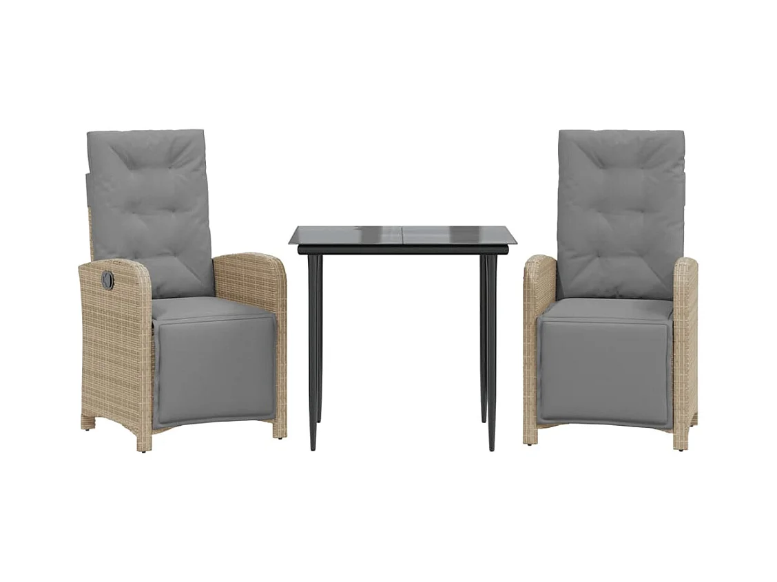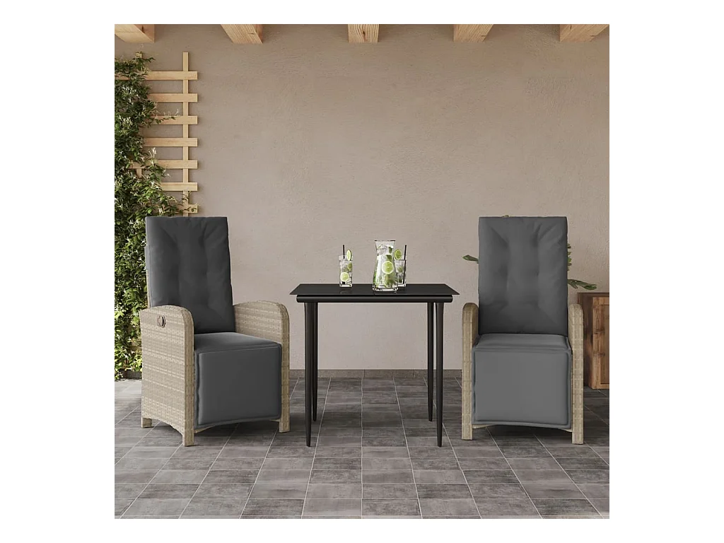 Ensemble de bistro 3 pcs et coussins gris clair résine tressée FR85030