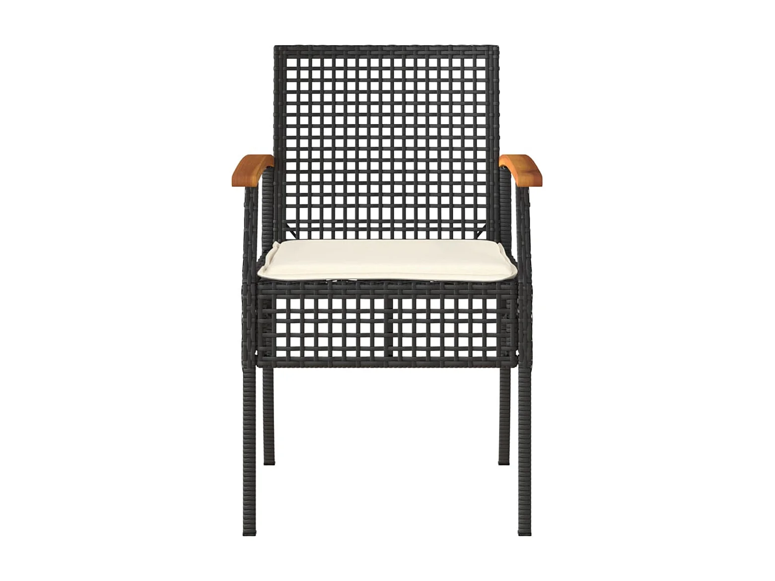 Ensemble de bistro 3 pcs et coussins noir résine tressée acacia