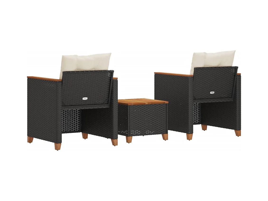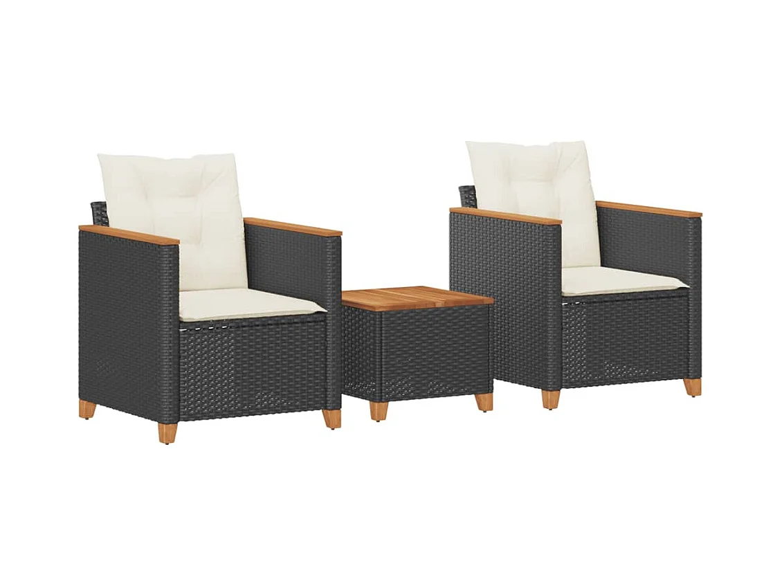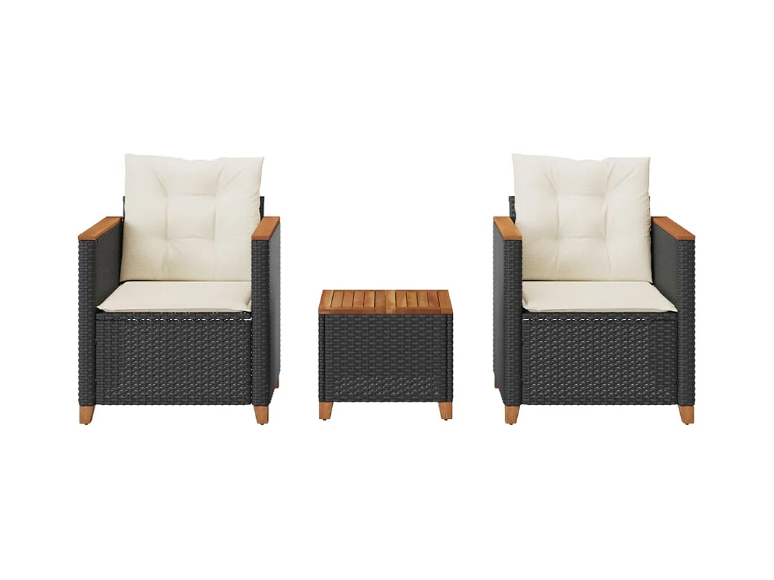 Ensemble de bistro 3 pcs et coussins noir résine tressée acacia FR84802