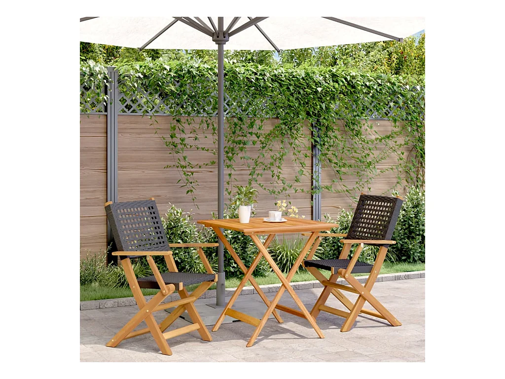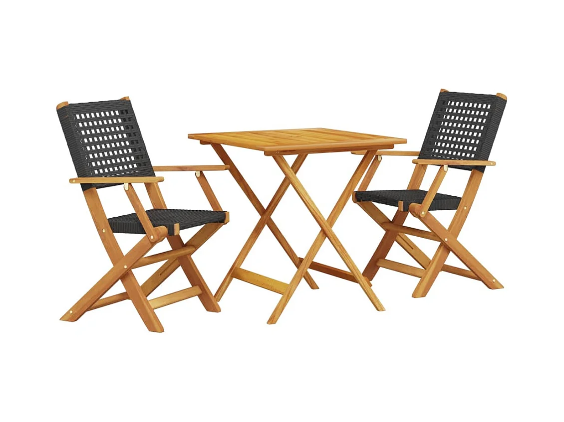 Ensemble de bistro 3 pcs noir résine tressée et bois d'acacia FR24479