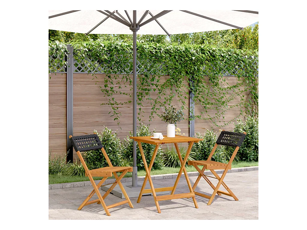 Ensemble de bistro 3 pcs noir polypropylène et bois massif FR27320