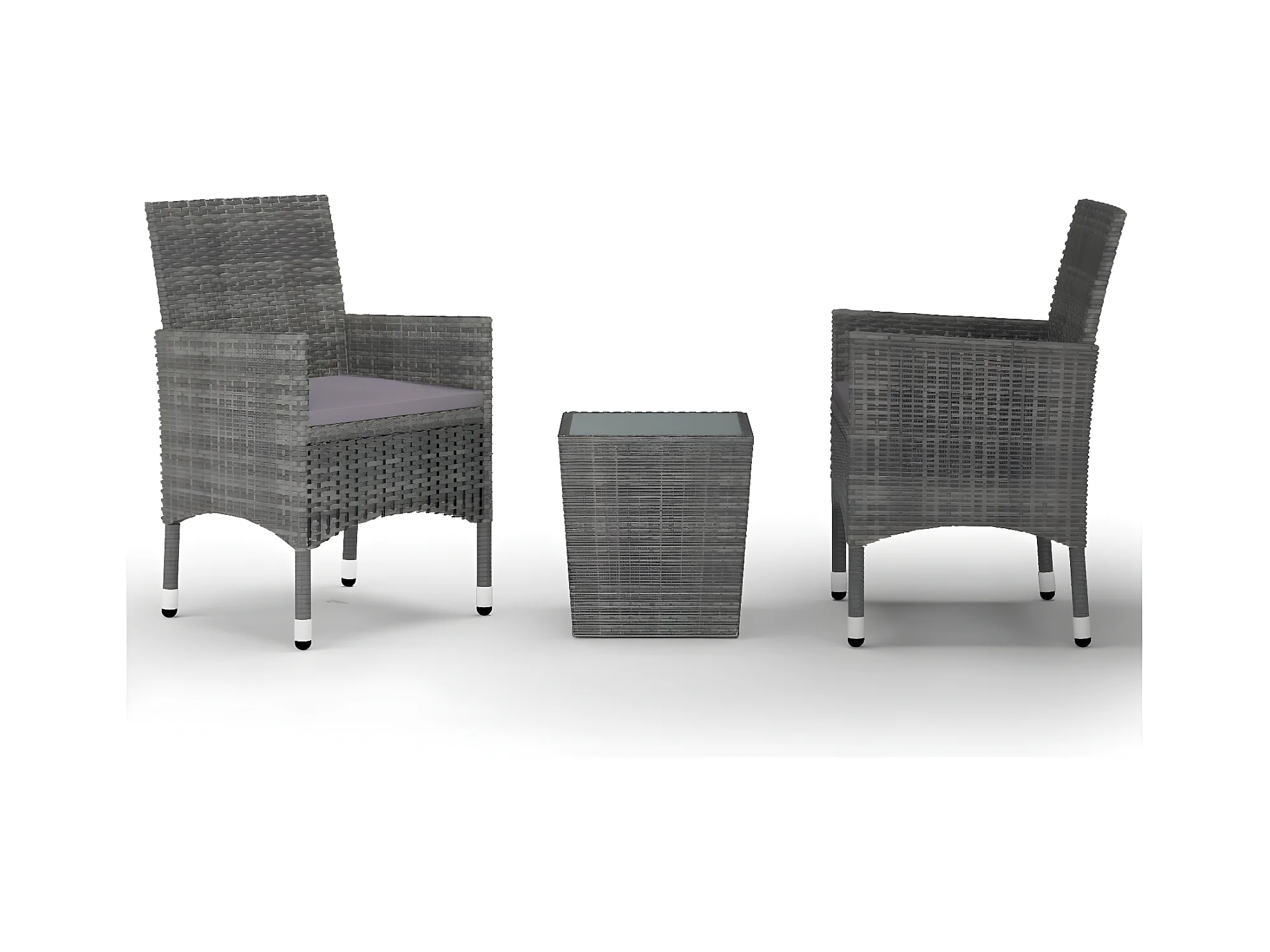 Ensemble à manger de jardin 3 pièces coussins gris résine tressée