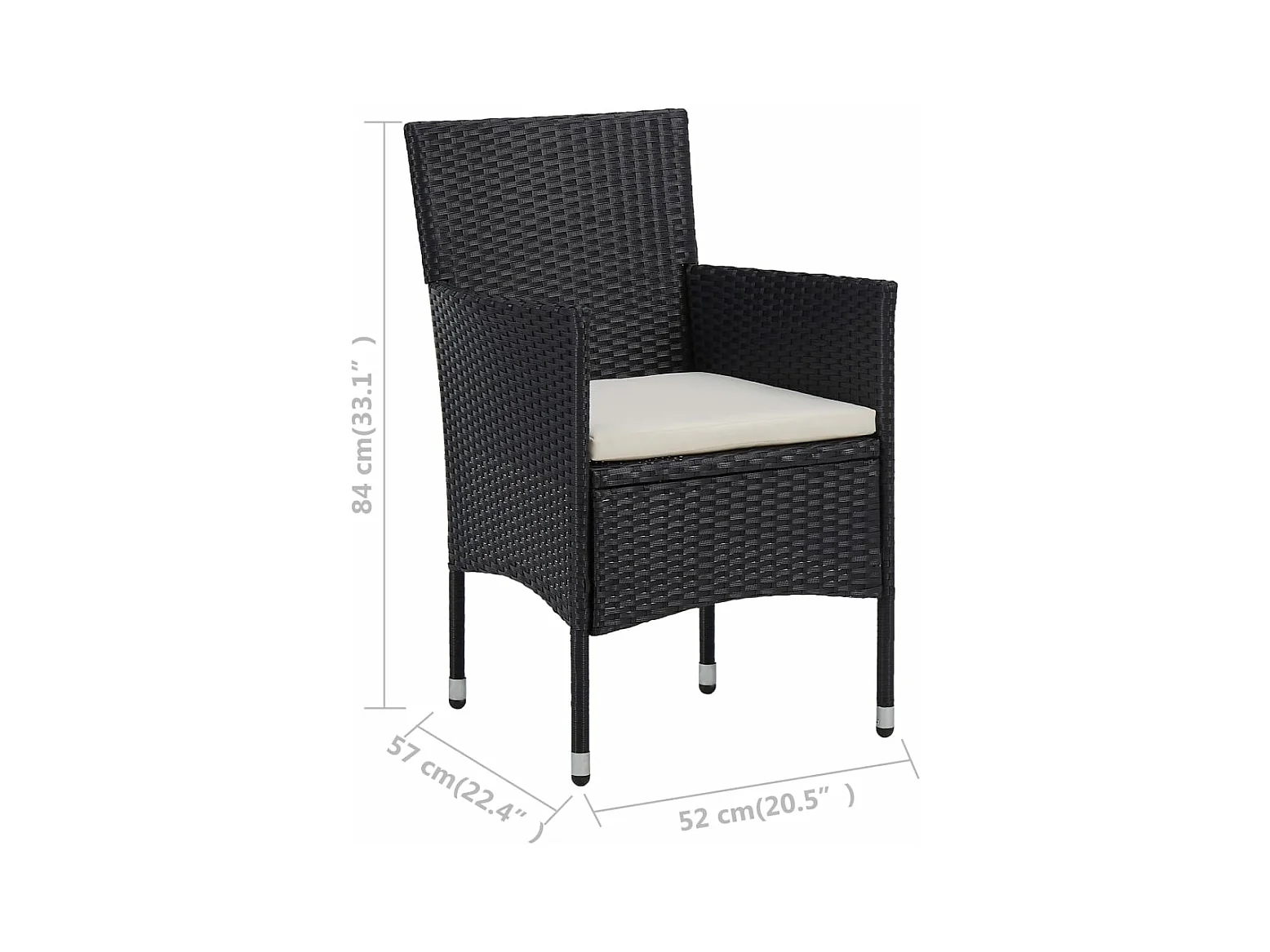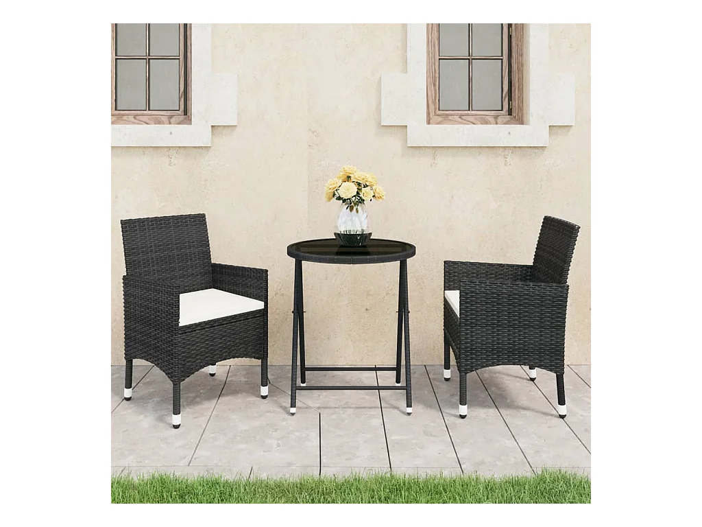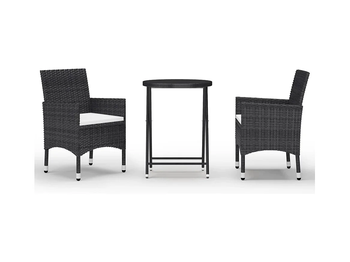Ensemble à manger d'extérieur 3 pcs Rotin PVC Noir