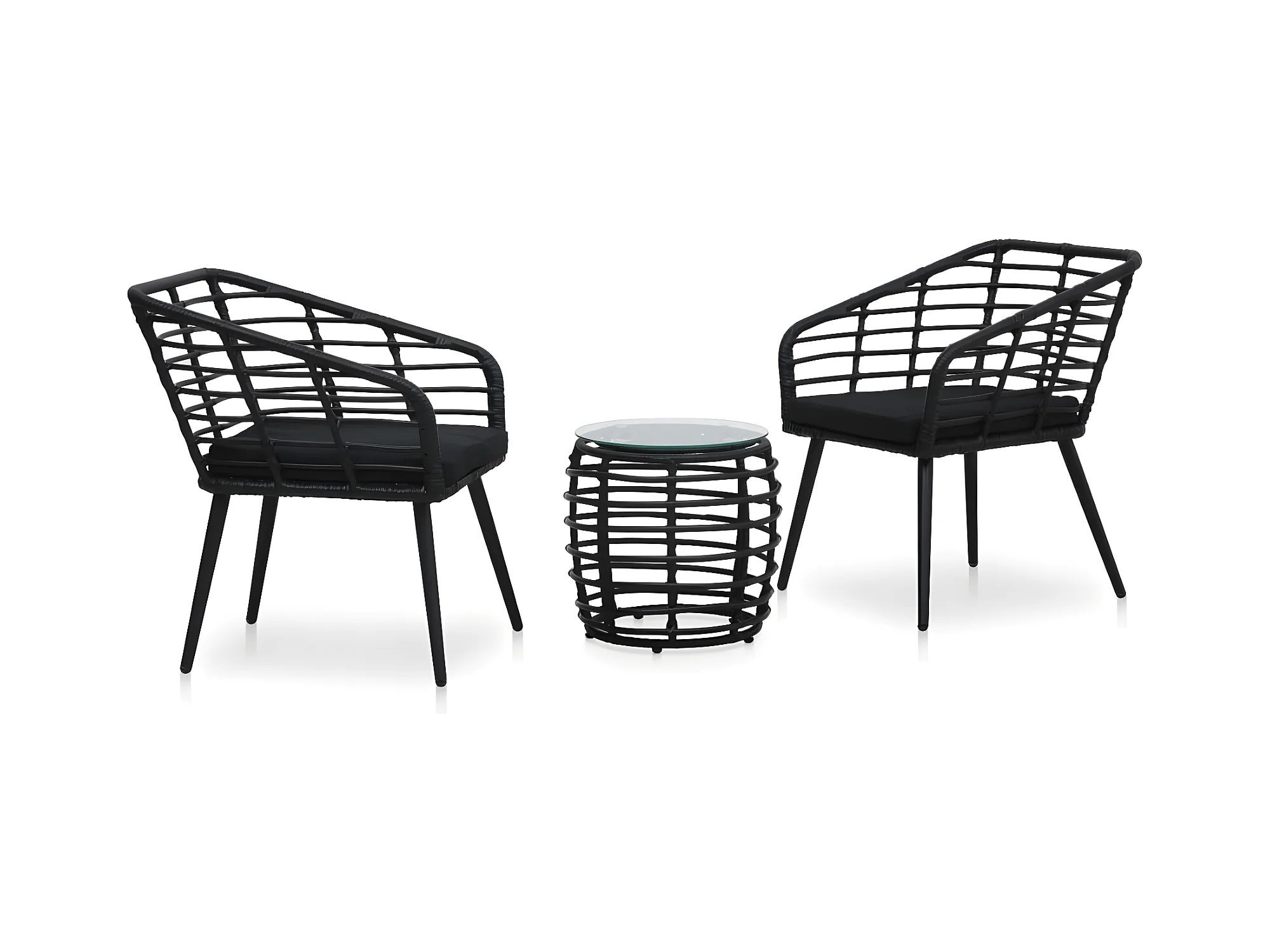 Ensemble de bistro 3 pcs Résine tressée Noir GFDF14631
