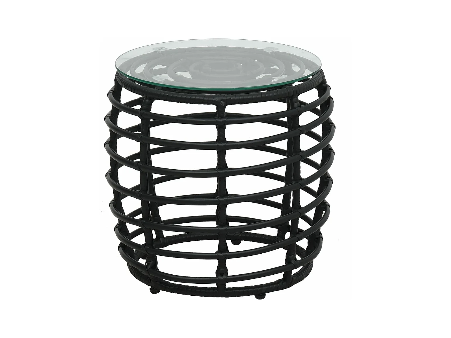 Ensemble à manger de jardin et coussins 3 pièces noir rotin verre