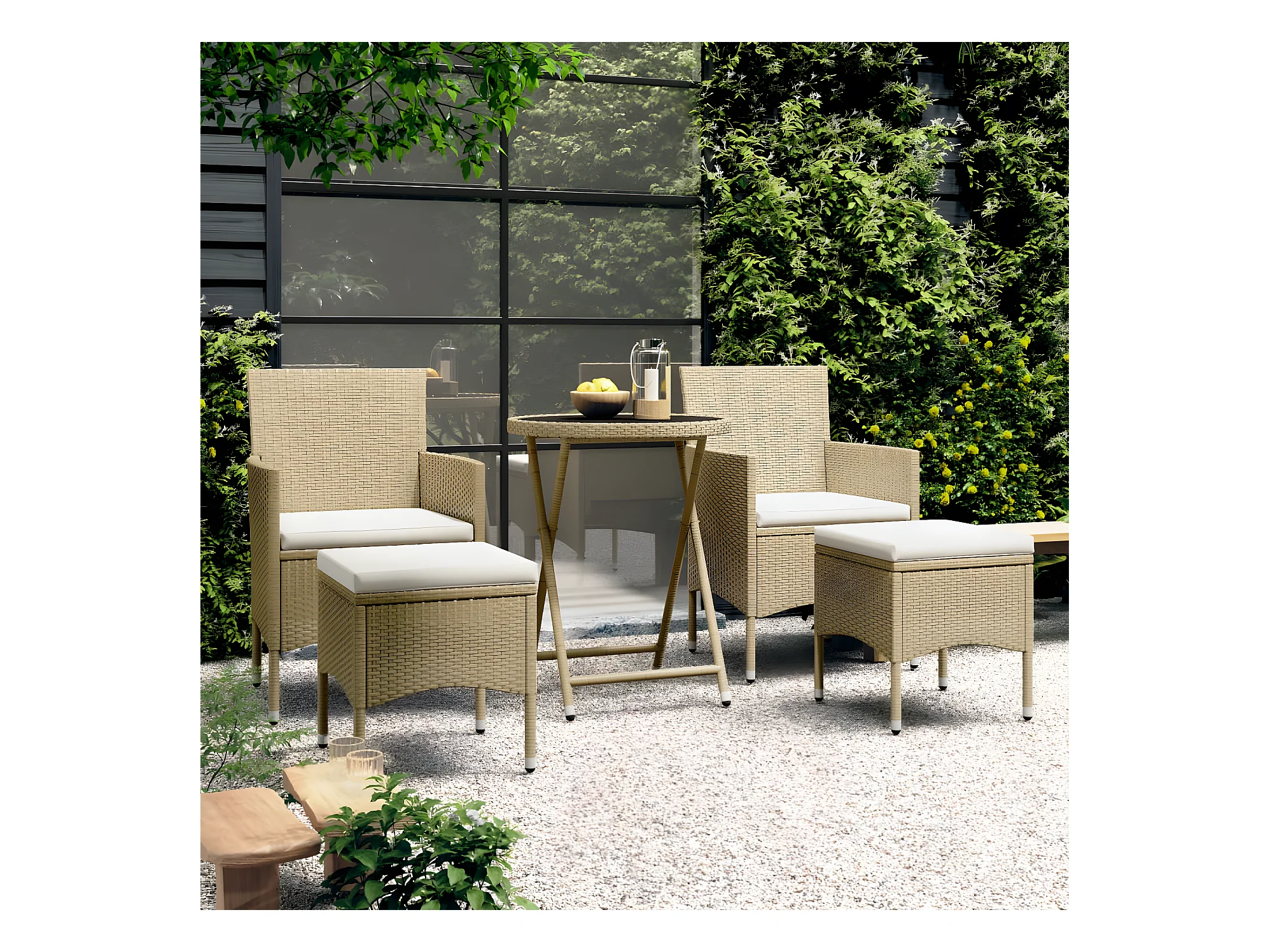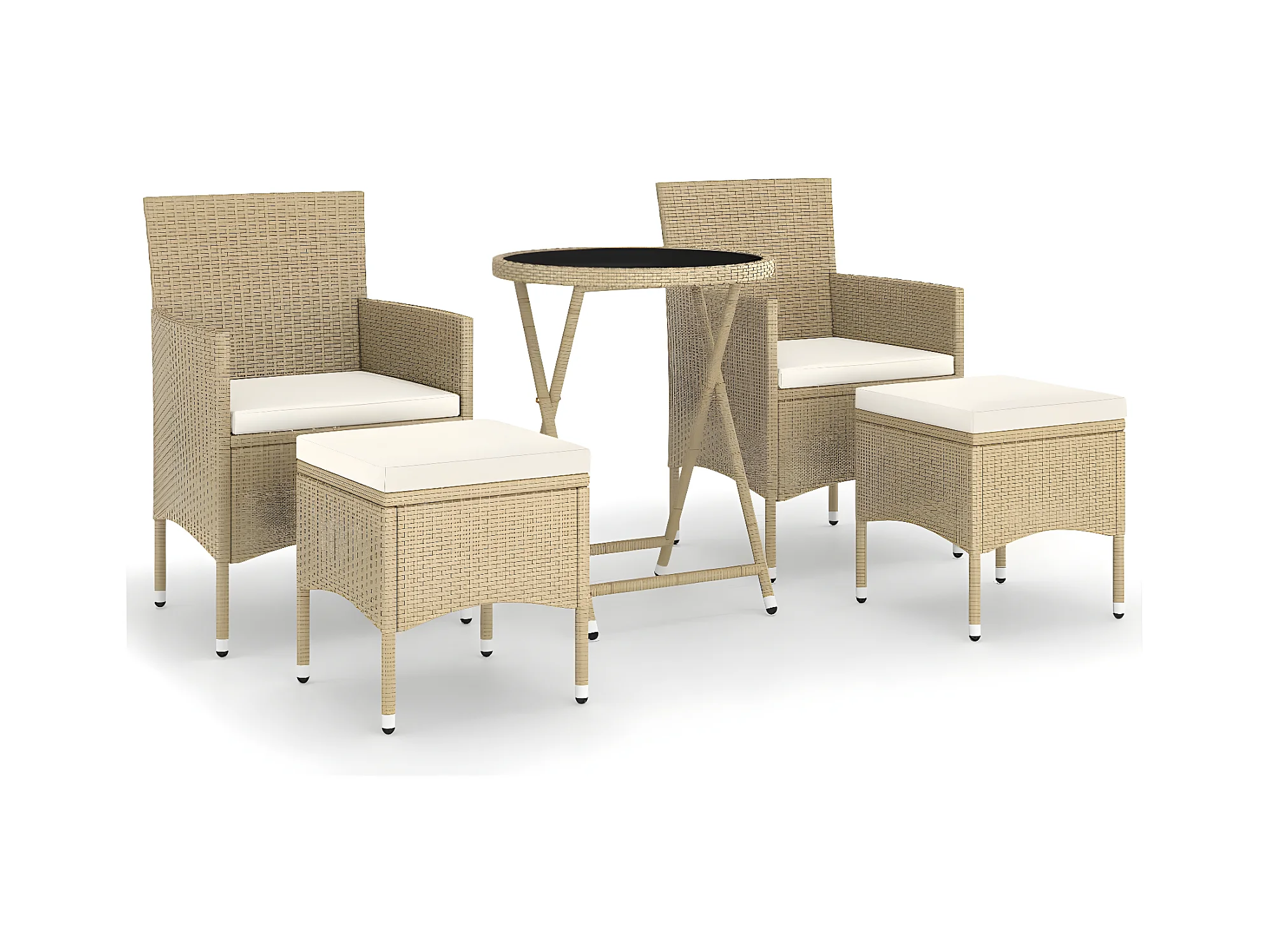 Ensemble de bistro 5 pcs Résine tressée et verre trempé Beige GFDF13560