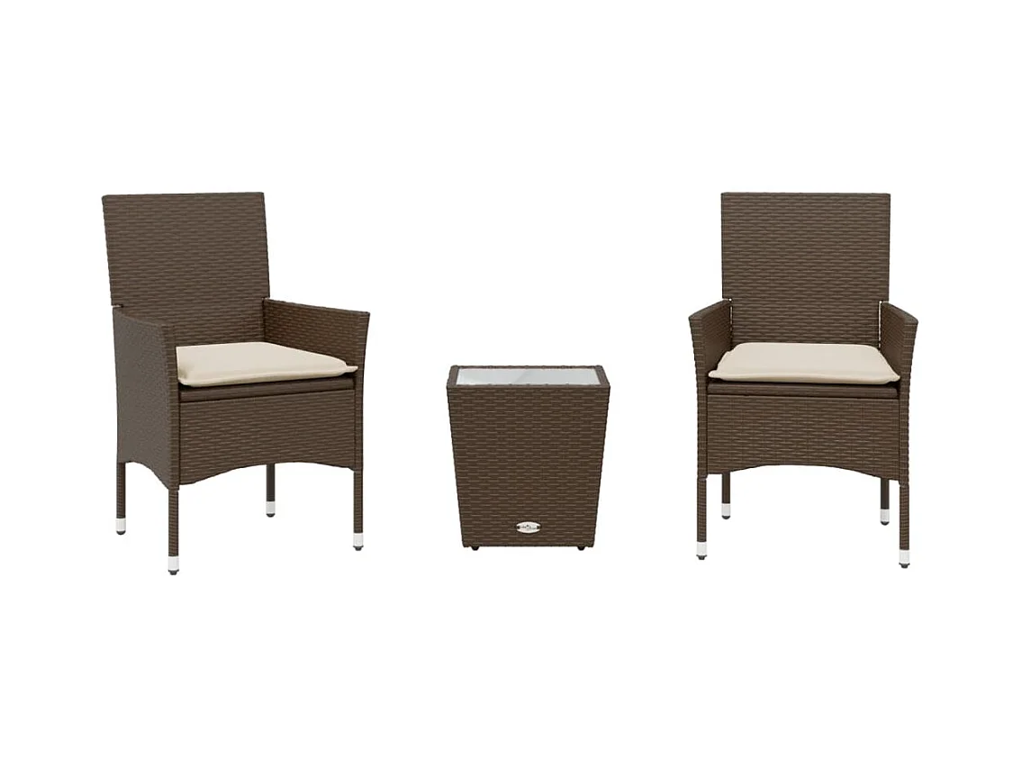 Ensemble de bistro avec coussins 3 pcs marron rotin et verre FR26392