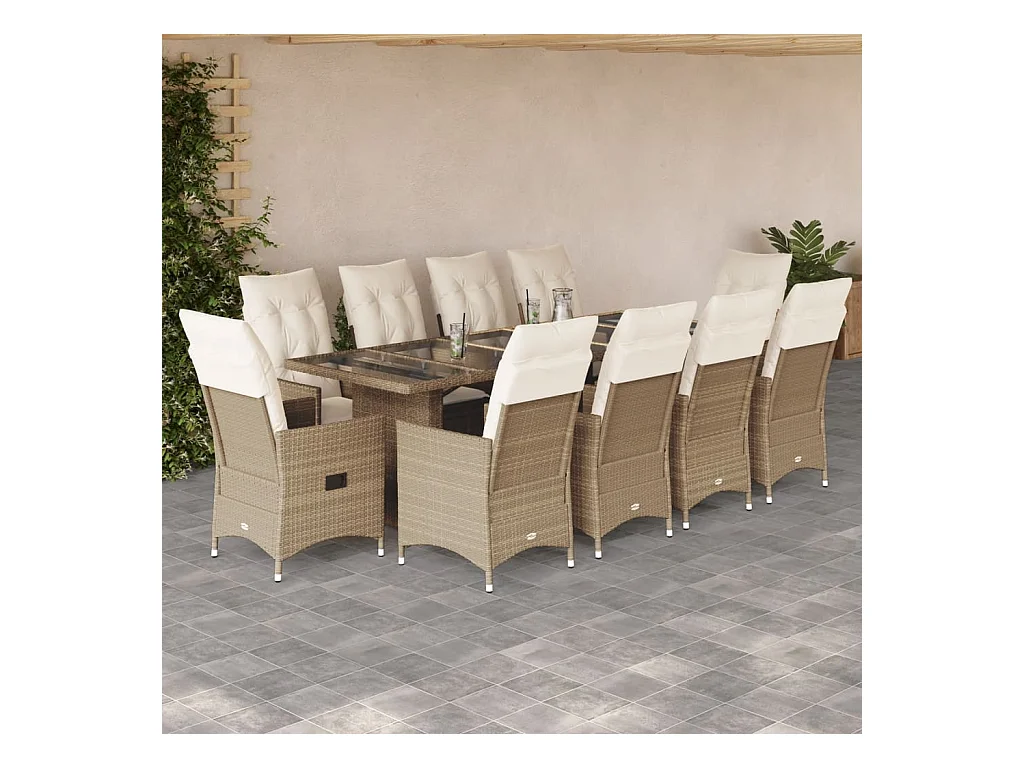 Ensemble de bistro de jardin 11 pcs coussins beige poly rotin