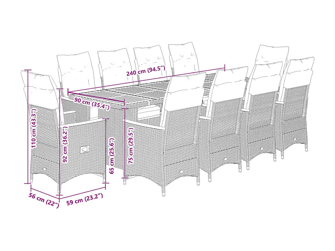 Ensemble à manger de jardin 9pcs coussins noir résine tressée
