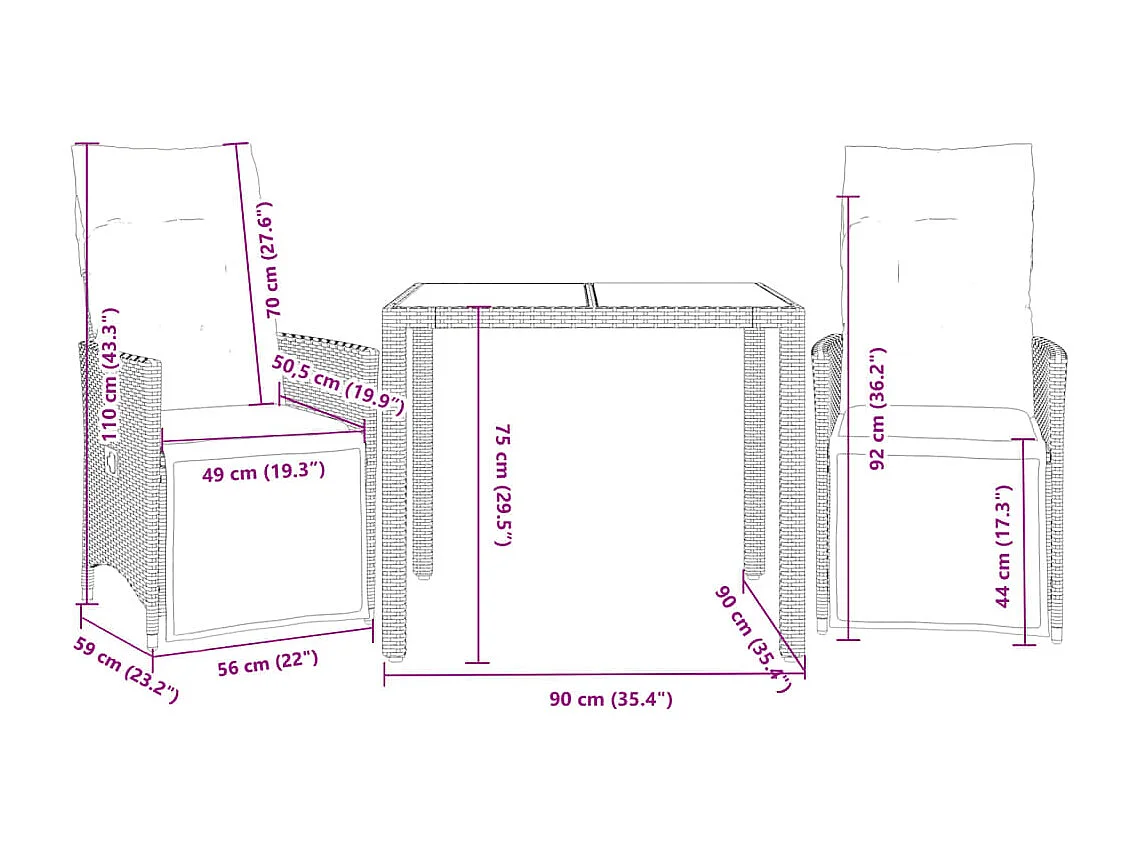 Ensemble de bistro de jardin 3 pcs coussins marron poly rotin