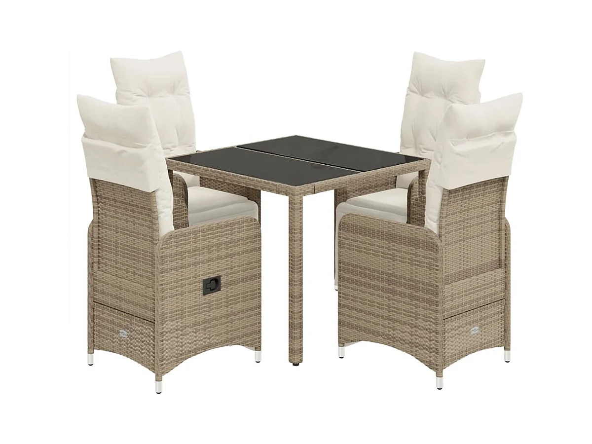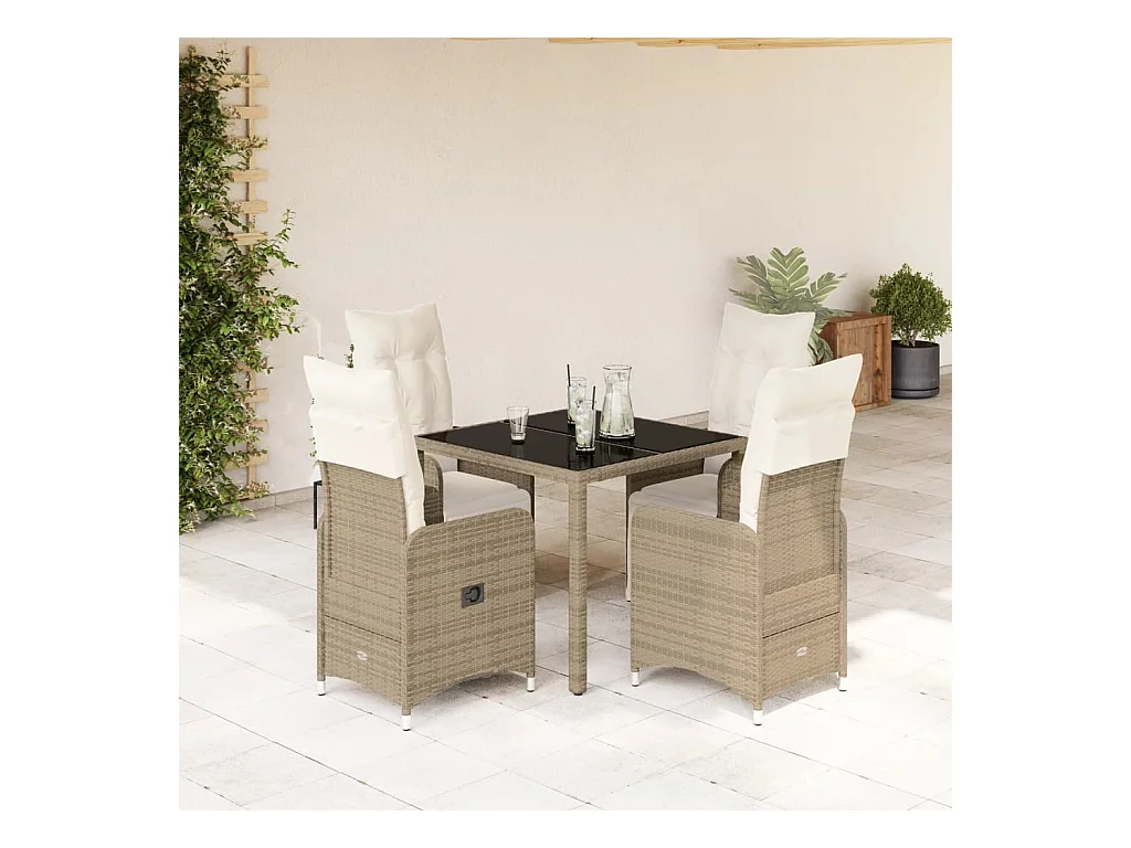 Ensemble de bistro de jardin 5 pcs coussins marron poly rotin