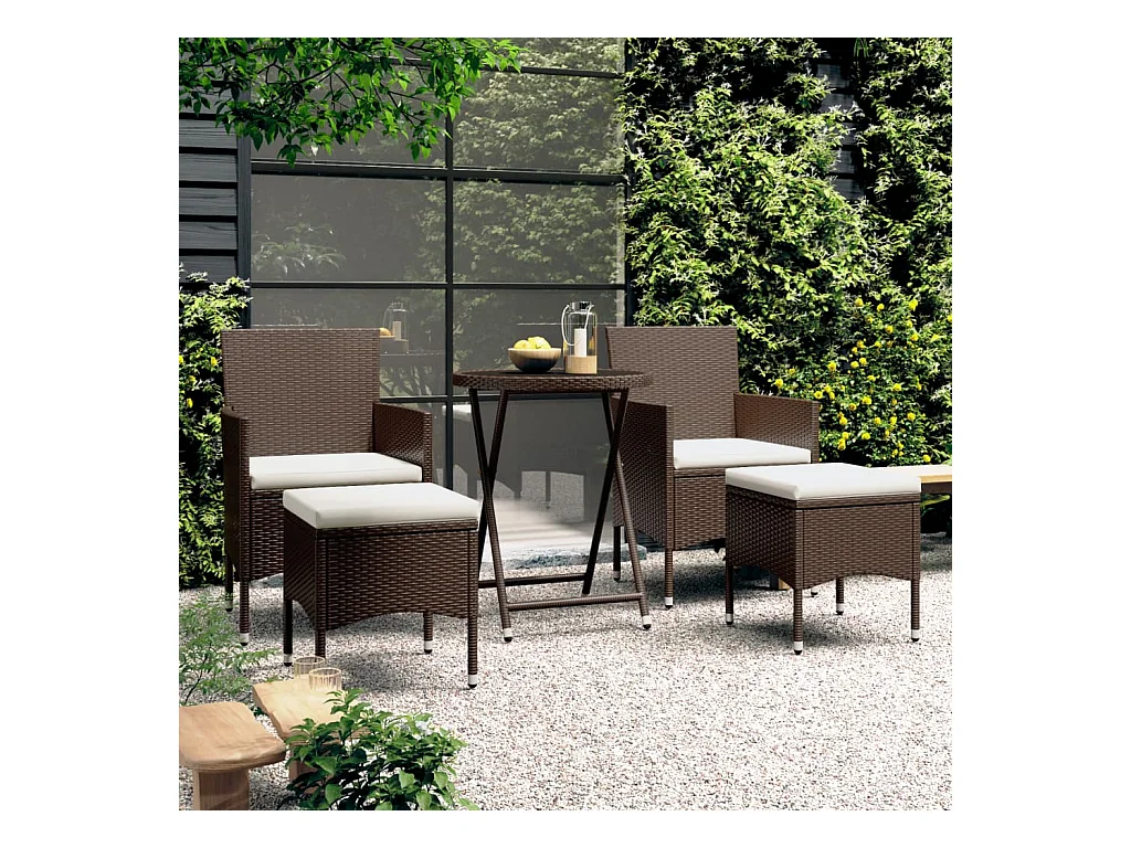 Ensemble de bistro de jardin 5 pcs poly rotin et verre trempé