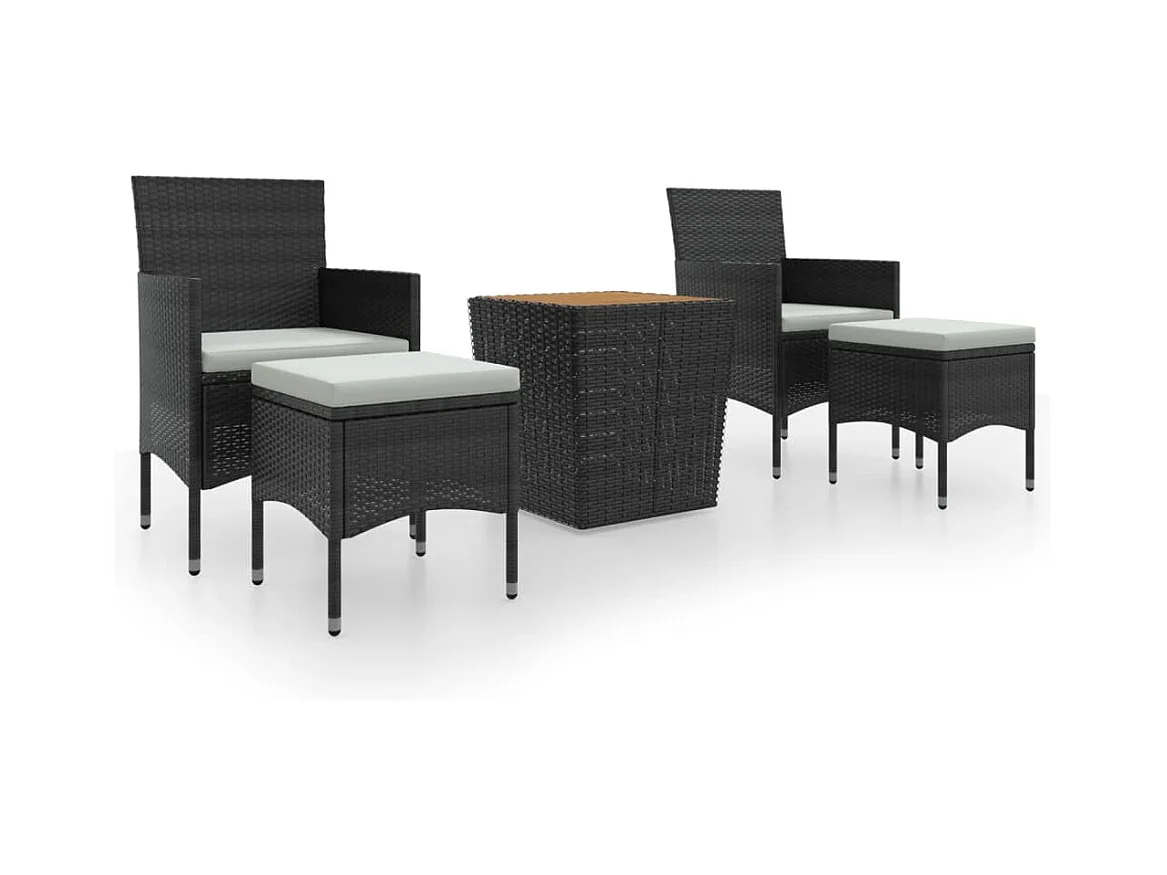 Ensemble de bistro de jardin 5pcs Résine tressée et acacia Noir