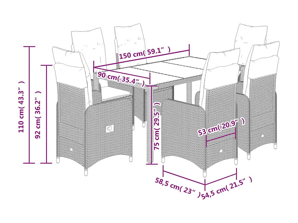 Ensemble de bistro de jardin 7 pcs coussins beige poly rotin